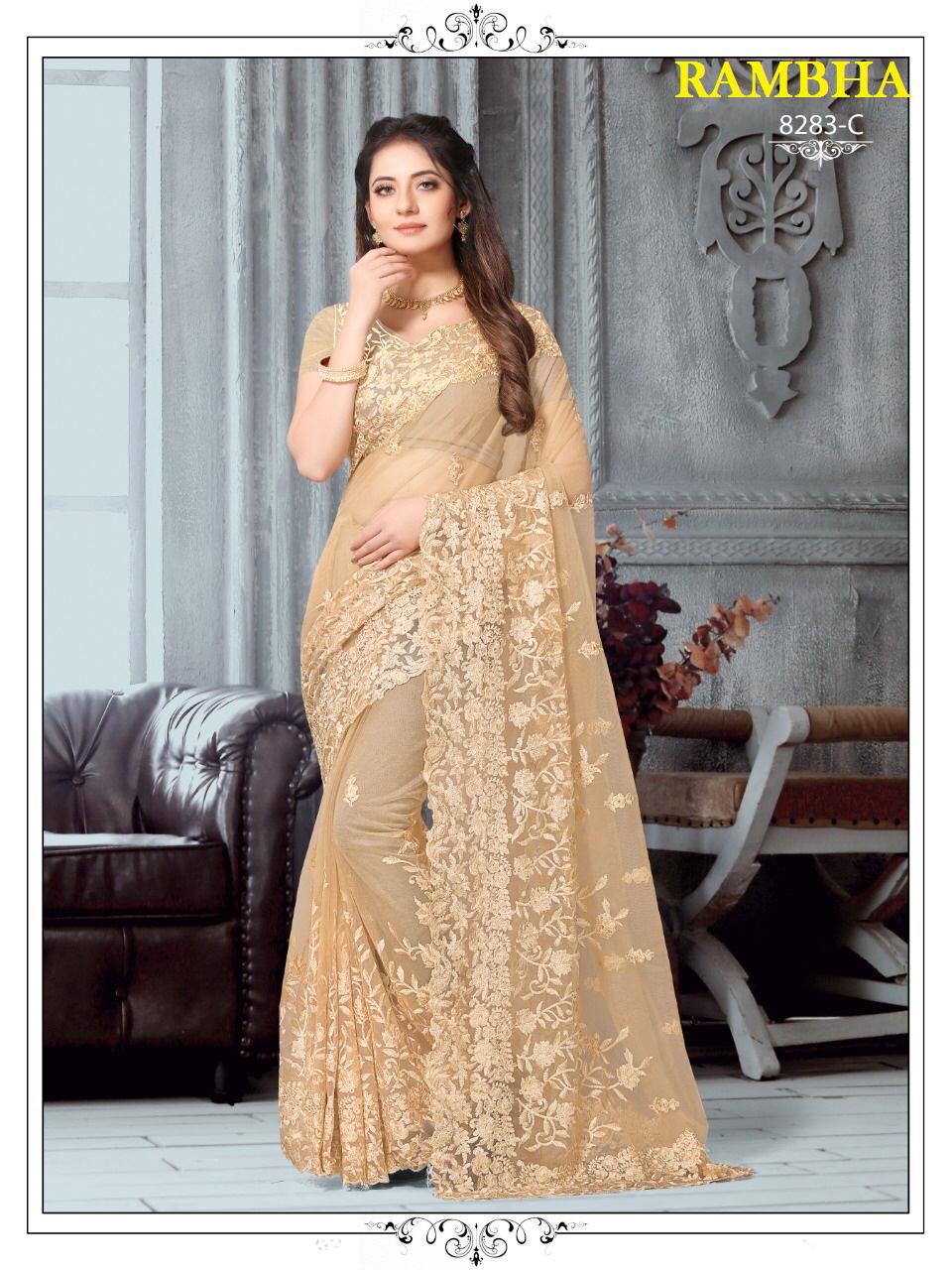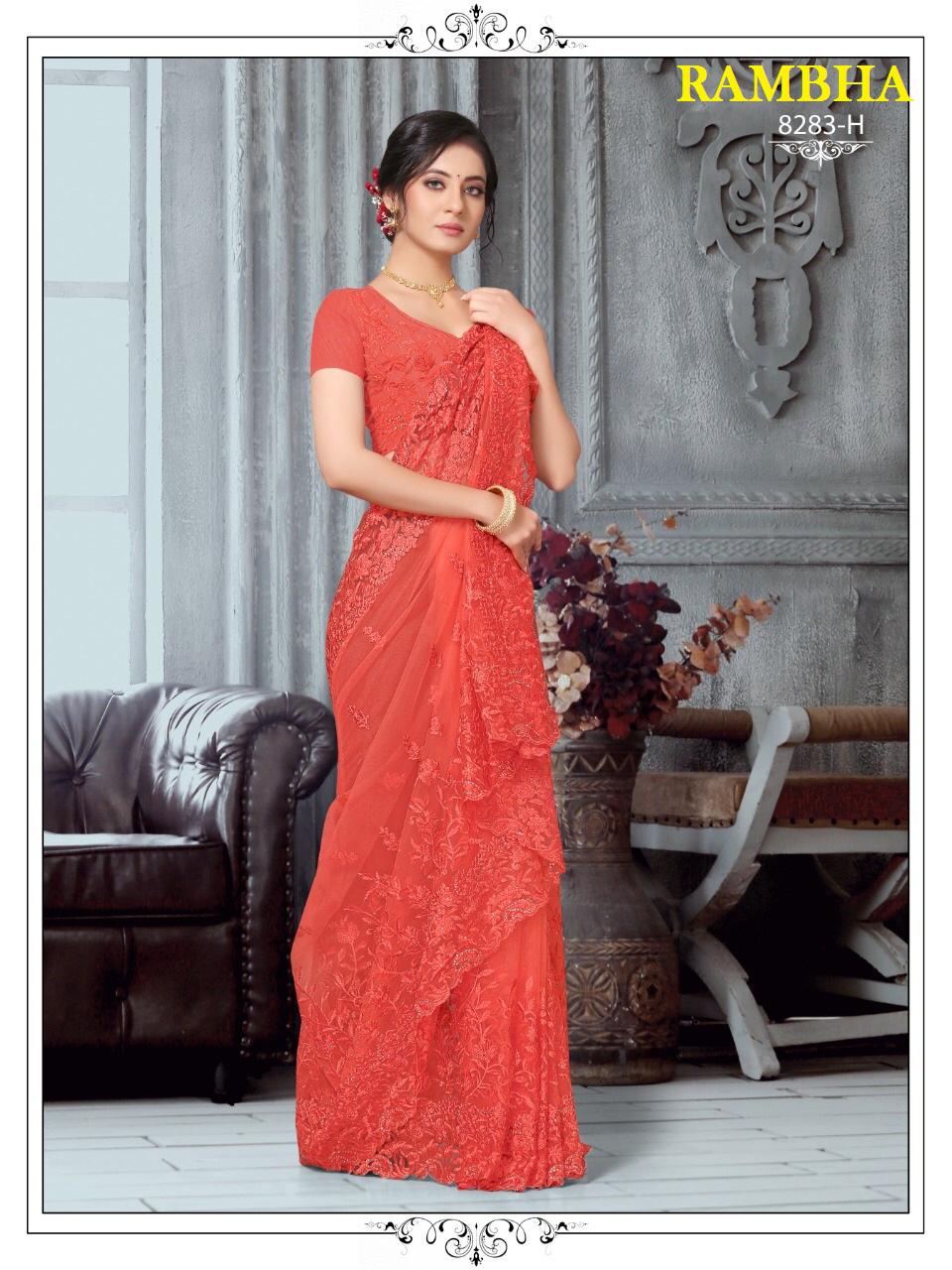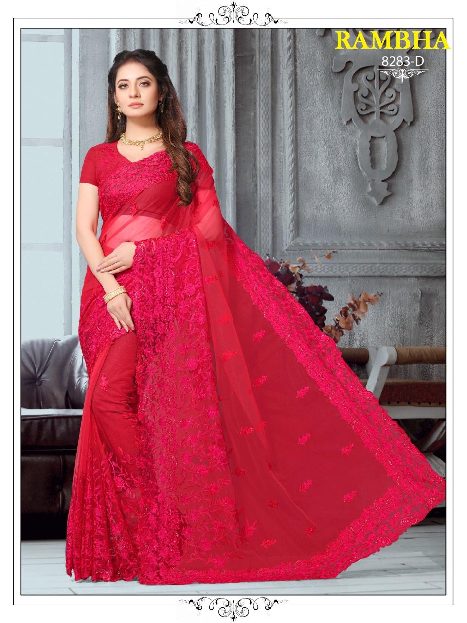 Brand - Rambha . Type - Saree. Degine in price list . * set & loose & Singel * Single Extra 100 GST 5 Percent Extra. Fabric Full Nett with Nett blouse . Delivery from today. No catlog Book . Only per Pcs photo . Book your order now |