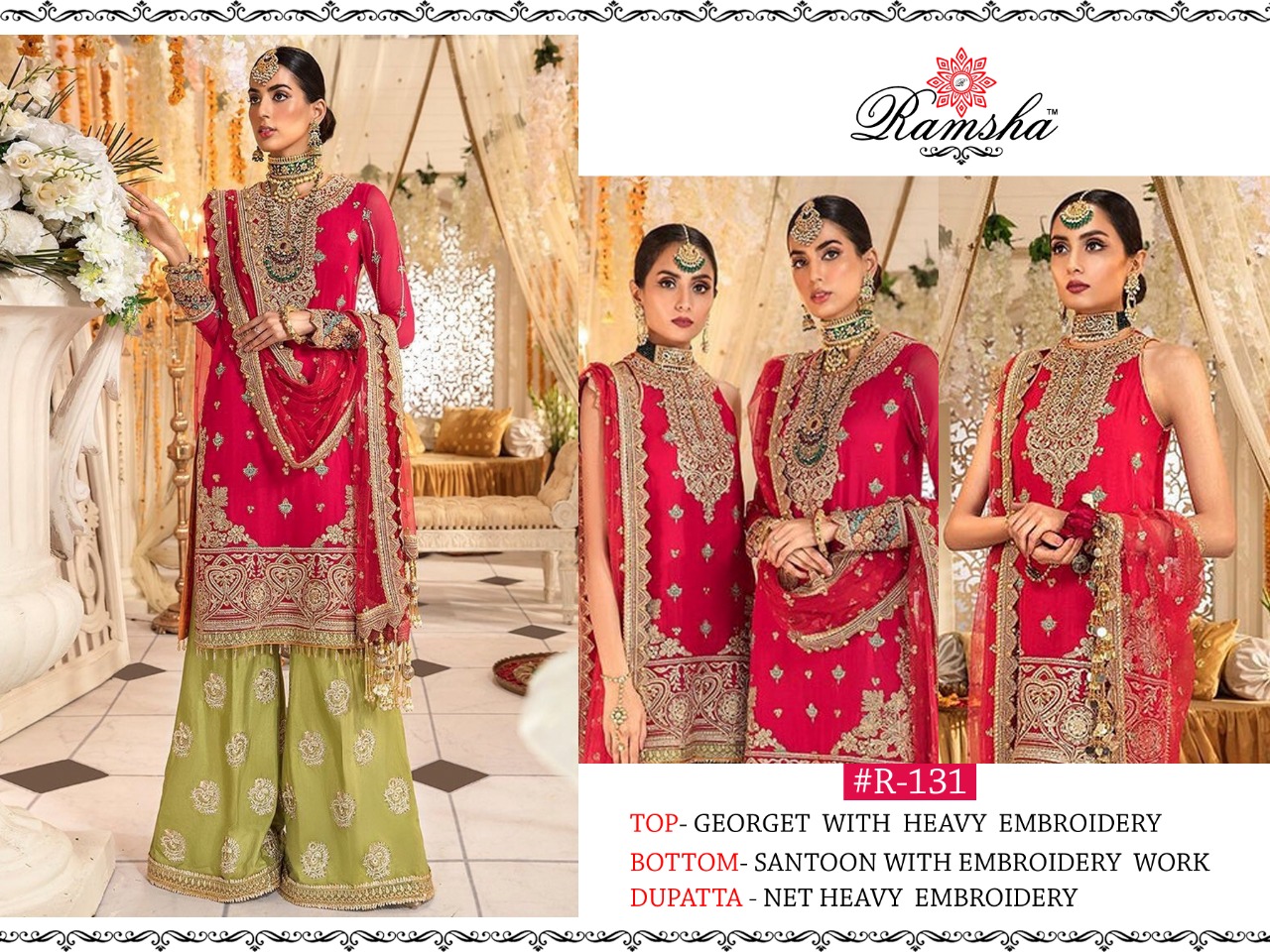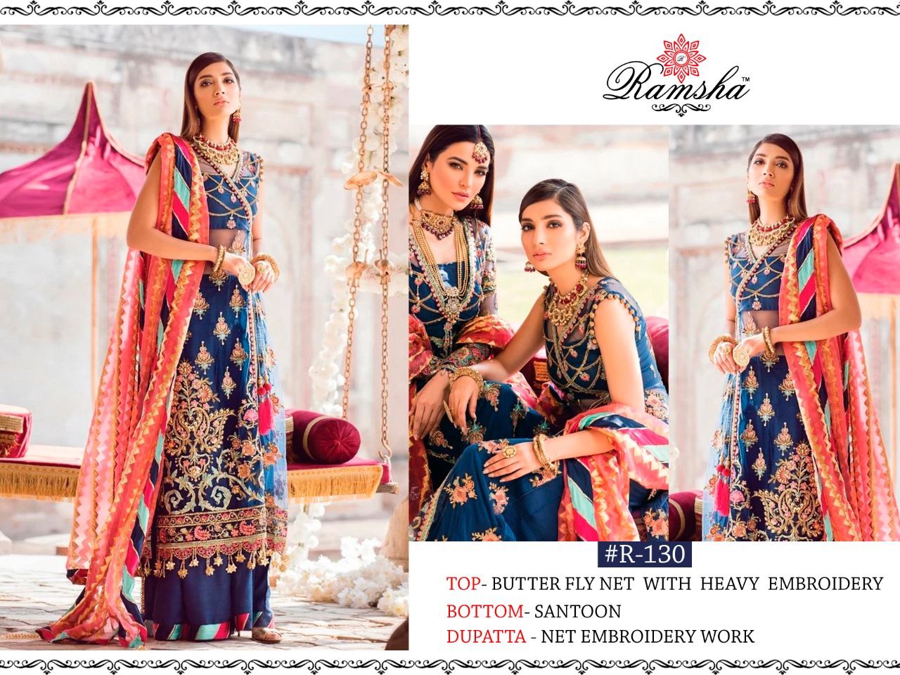 Buy Online Ramsha R 128 R 129 R130 R313 Pakistani Suits Set And Single Wholesale Supplier Gujarat 4 Pcs of Full Catalogue at Wholesale Price. Looking for Ramsha R 128 R 129 R130 R313 Pakistani Suits Set And Single Wholesale Supplier Gujarat Full Catalouge at Best Price? Buy Now Ramsha R 128 R 129 R130 R313 Pakistani Suits Set And Single Wholesale Supplier Gujarat at Wholesale Rate of Rs 5404 with Total 4 Pcs from authroized dealer and supplier of Brand. Cost of Each piece is just only Rs 1351 which is very low and affordable price to resale the product in your retail store ,This is Surat based Wholesale Supplier & Dealer of Brand. Click on Brand name to Know more about Brand's products.Call or Whatsapp on 9898838984 for booking or enquiry