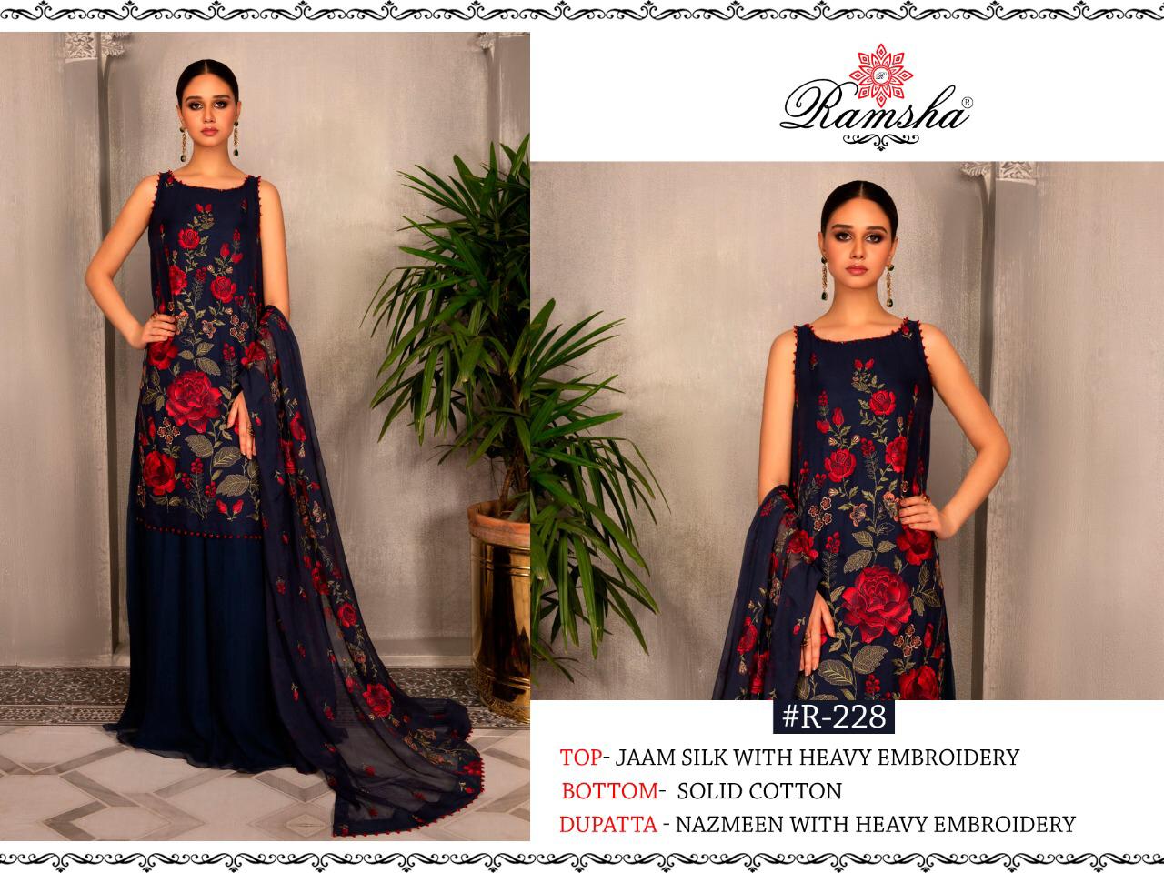 Buy Online Ramsha R 228 Pakistani Suits Wholesale Supplier Gujarat 1 Pcs of Full Catalogue at Wholesale Price. Looking for Ramsha R 228 Pakistani Suits Wholesale Supplier Gujarat Full Catalouge at Best Price? Buy Now Ramsha R 228 Pakistani Suits Wholesale Supplier Gujarat at Wholesale Rate of Rs 1151 with Total 1 Pcs from authroized dealer and supplier of Brand. Cost of Each piece is just only Rs 1151 which is very low and affordable price to resale the product in your retail store ,This is Surat based Wholesale Supplier & Dealer of Brand. Click on Brand name to Know more about Brand's products.Call or Whatsapp on 9898838984 for booking or enquiry