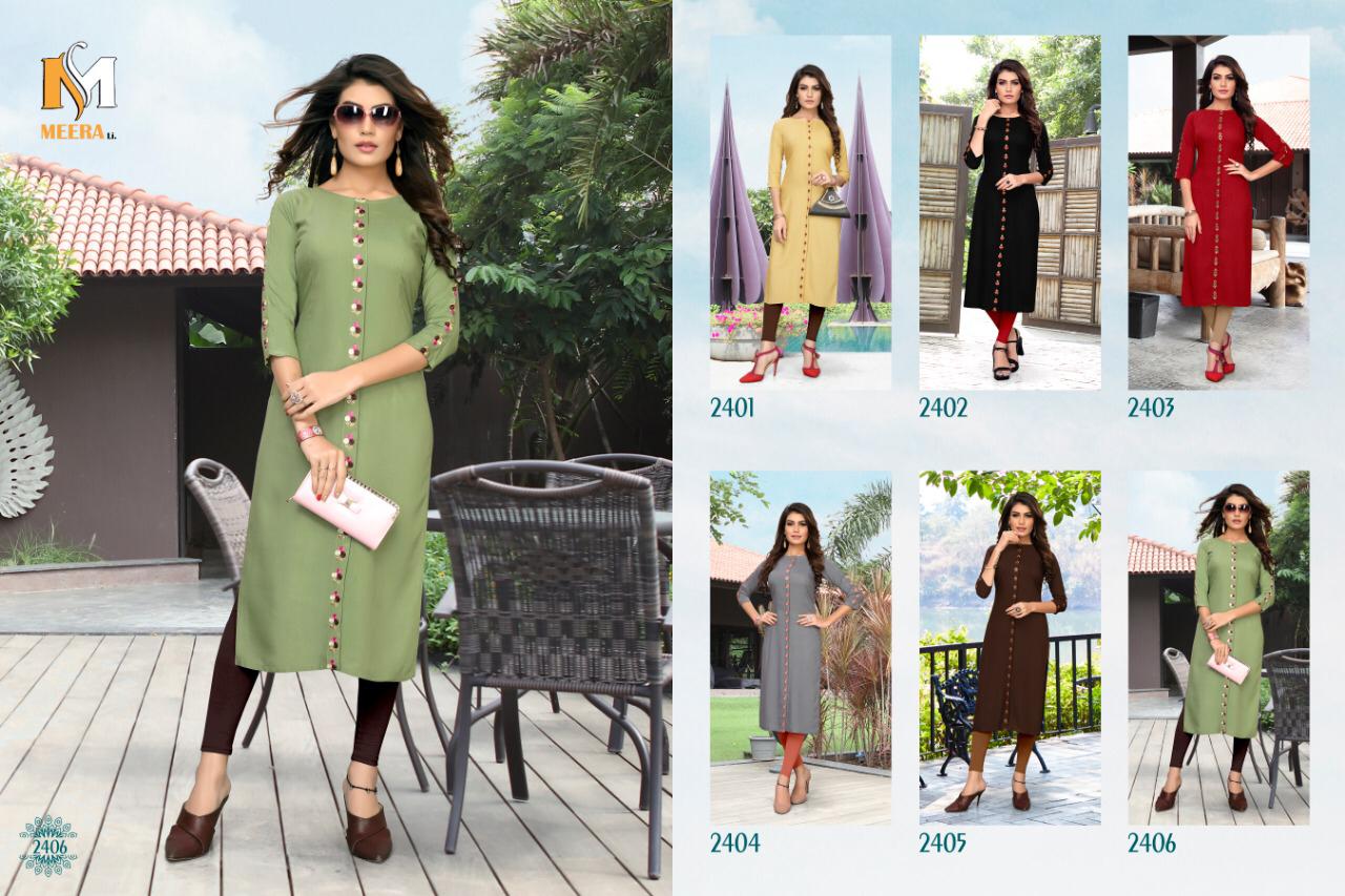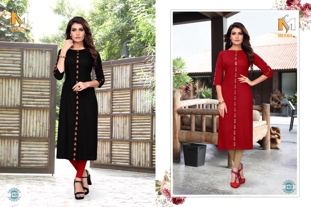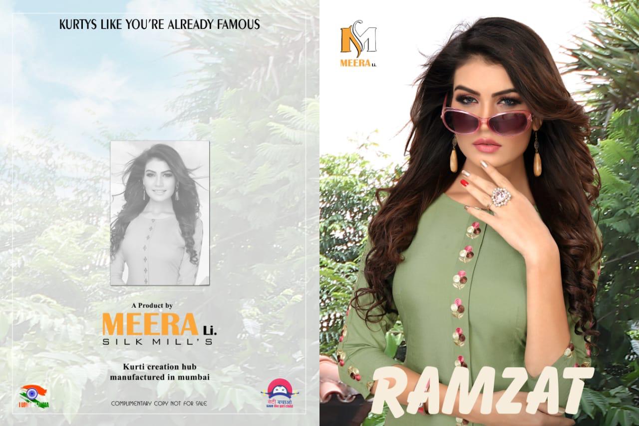 Ramzat Vol 1 By Meerali Silk Mills Reyon Kurtis Collection Supplier Gujarat