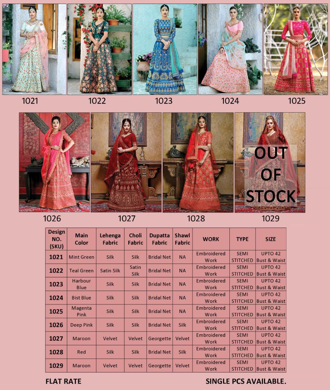 Buy Online Rasam Vol 1 By Khushboo Series 1021 To 1029 Designer Lehngas Wholesale Supplier And Dealer India 9 Pcs of Full Catalogue at Wholesale Price. Looking for Rasam Vol 1 By Khushboo Series 1021 To 1029 Designer Lehngas Wholesale Supplier And Dealer India Full Catalouge at Best Price? Buy Now Rasam Vol 1 By Khushboo Series 1021 To 1029 Designer Lehngas Wholesale Supplier And Dealer India at Wholesale Rate of Rs 0 with Total 9 Pcs from authroized dealer and supplier of Brand. Cost of Each piece is just only Rs 0 which is very low and affordable price to resale the product in your retail store ,This is Surat based Wholesale Supplier & Dealer of Brand. Click on Brand name to Know more about Brand's products.Call or Whatsapp on 9898838984 for booking or enquiry