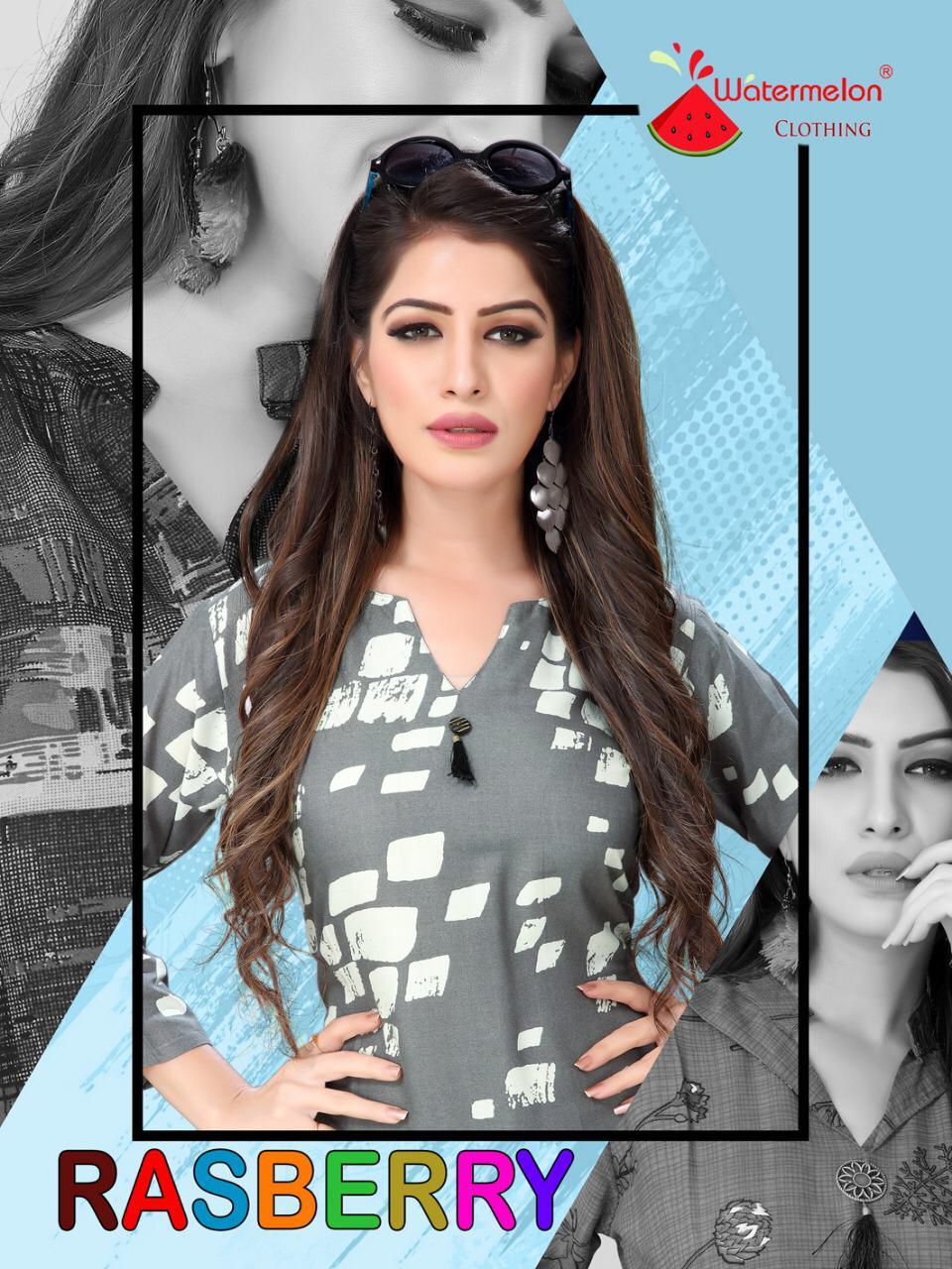 Buy Online Rasberry By Watermelon 1301 Series Fancy Reyon Printed Kurti Catlogue Wholesale Dealer Surat 8 Pcs of Full Catalogue at Wholesale Price. Looking for Rasberry By Watermelon 1301 Series Fancy Reyon Printed Kurti Catlogue Wholesale Dealer Surat Full Catalouge at Best Price? Buy Now Rasberry By Watermelon 1301 Series Fancy Reyon Printed Kurti Catlogue Wholesale Dealer Surat at Wholesale Rate of Rs 3000 with Total 8 Pcs from authroized dealer and supplier of WATERMELON Brand. Cost of Each piece is just only Rs 375 which is very low and affordable price to resale the product in your retail store ,This is Surat based Wholesale Supplier & Dealer of WATERMELON Brand. Click on Brand name to Know more about WATERMELON Brand's products.Call or Whatsapp on 9898838984 for booking or enquiry