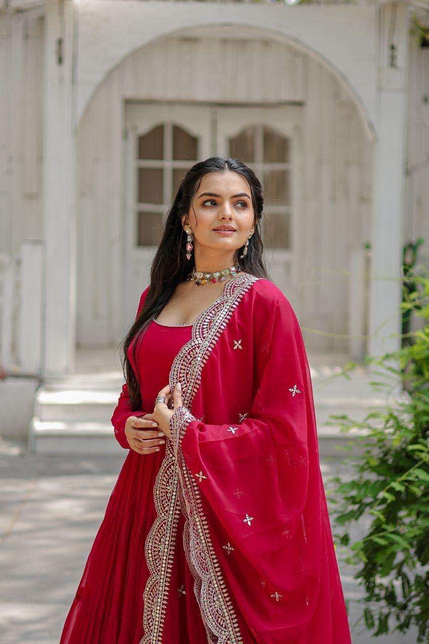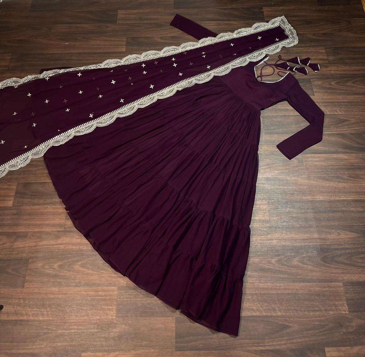 💖 Desirable Women's Fully Flaired Gown Made With Faux Georgette Fabrics and Designer Embroidered Dupatta 💃🏻