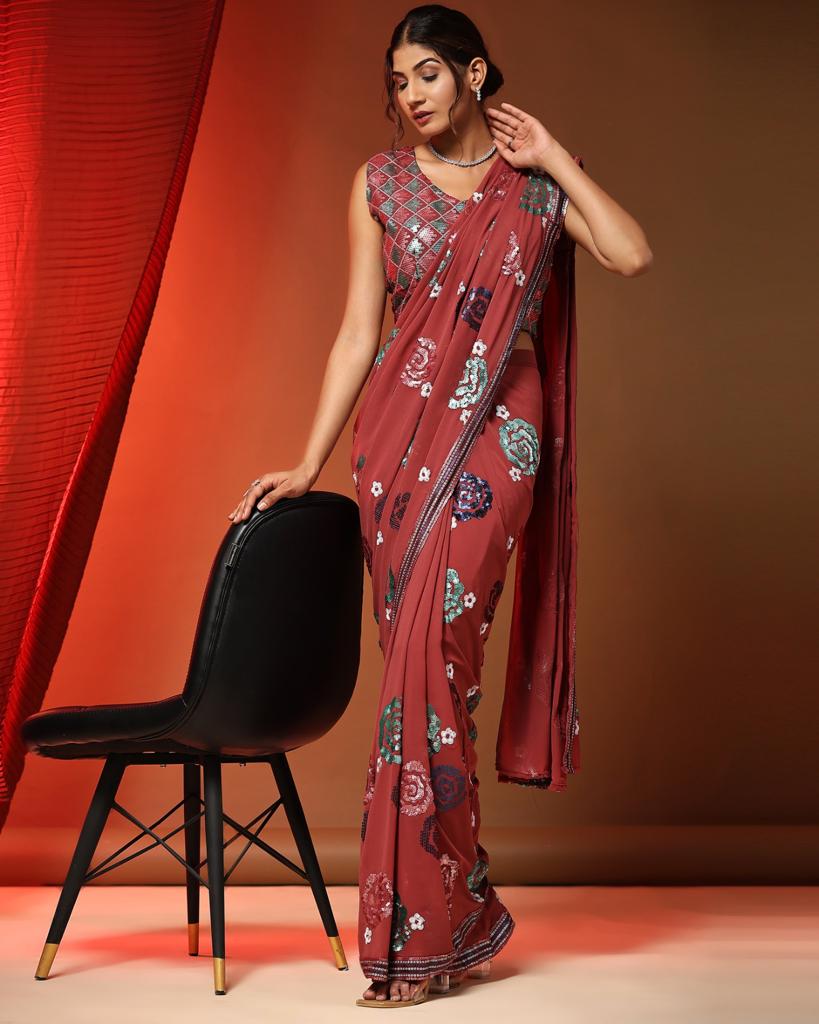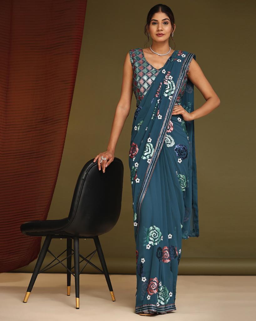 Readymade Saree New Design 249 Heavy Sequence With Embroidery Work Collection Manufacturer Surat