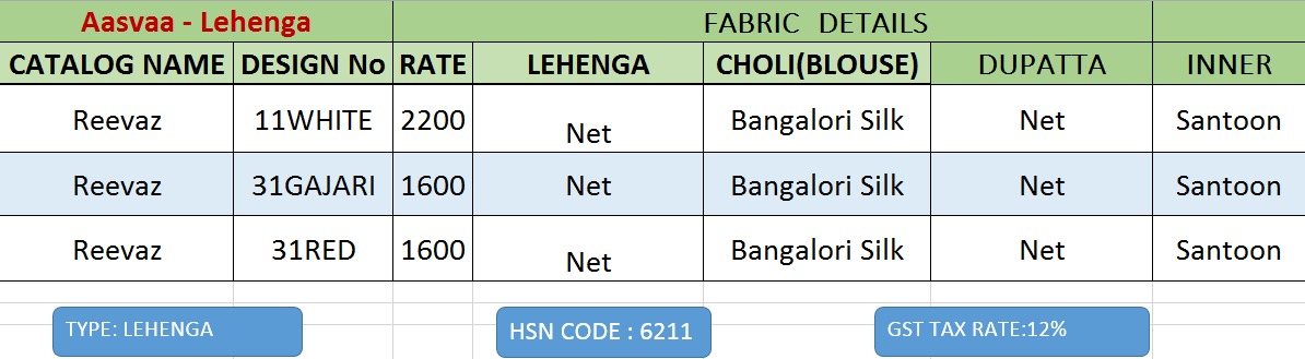Buy Online Reevaz By Aasvaa Designer Net Party Wear Wedding Wear Lehngas Wholesale Supplier And Dealer Nityanx Gujarat 3 Pcs of Full Catalogue at Wholesale Price. Looking for Reevaz By Aasvaa Designer Net Party Wear Wedding Wear Lehngas Wholesale Supplier And Dealer Nityanx Gujarat Full Catalouge at Best Price? Buy Now Reevaz By Aasvaa Designer Net Party Wear Wedding Wear Lehngas Wholesale Supplier And Dealer Nityanx Gujarat at Wholesale Rate of Rs 5400 with Total 3 Pcs from authroized dealer and supplier of Brand. Cost of Each piece is just only Rs 1800 which is very low and affordable price to resale the product in your retail store ,This is Surat based Wholesale Supplier & Dealer of Brand. Click on Brand name to Know more about Brand's products.Call or Whatsapp on 9898838984 for booking or enquiry