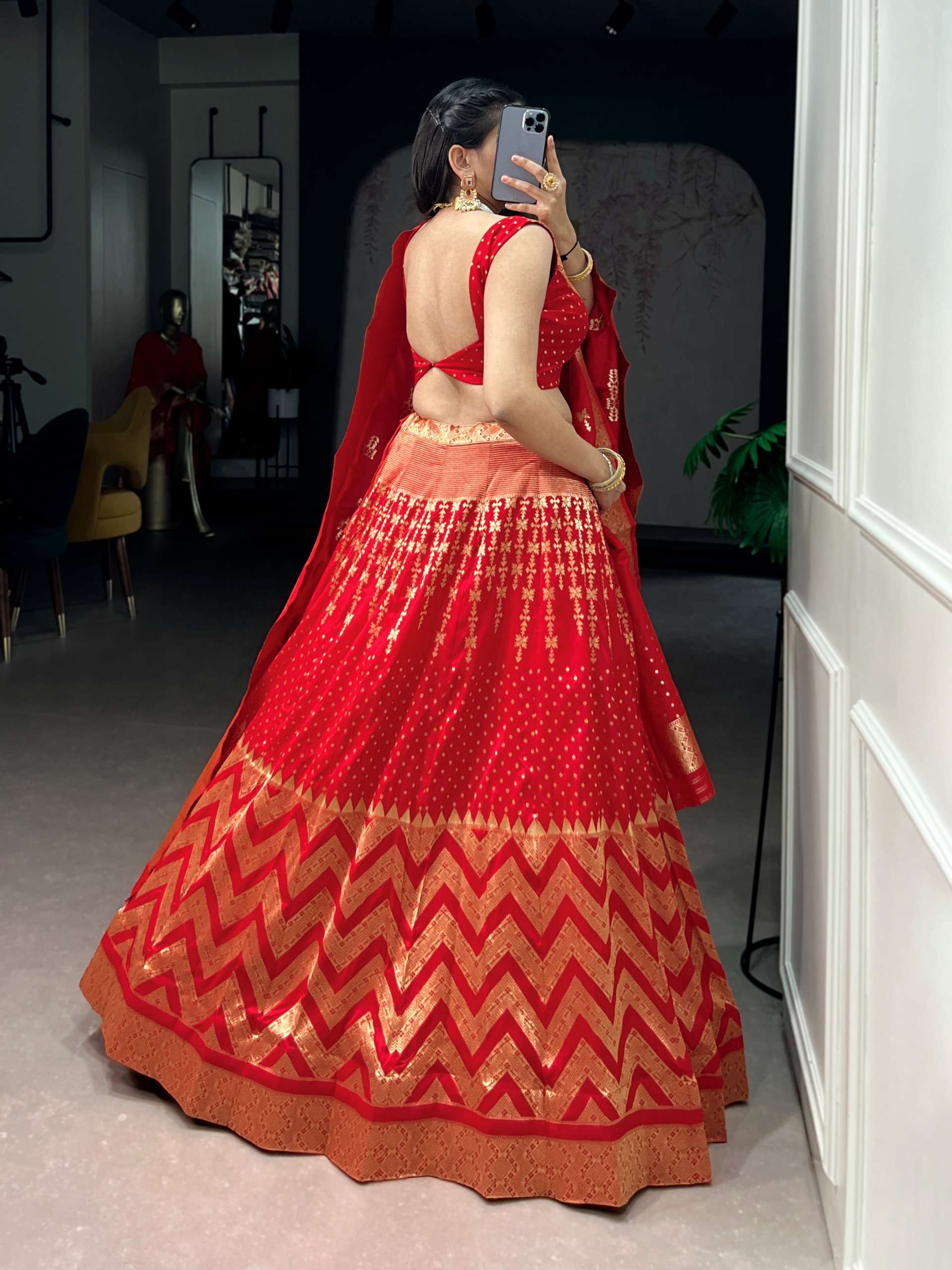 *Lehenga (Stitched)* Lehenga Fabric : Silk Lehenga work : Zari Weaving Work Lehenga Waist : SUPPORTED UP TO 42 Lehenga Closer : Drawstring with Zip Stitching : Stitched With Cancan And Canvas Length : 41 Flair : 3.40 Meter Inner : Micro Crepe