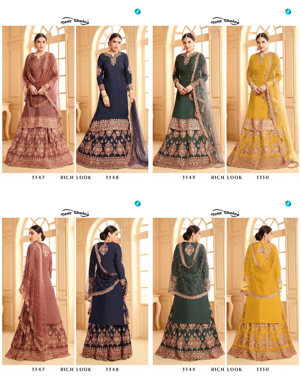 Buy Online Rich Look By Your Choice Satin Georgette Embroidered Designer Party Wear Suits Wholesale Supplier Gujarat 4 Pcs of Full Catalogue at Wholesale Price. Looking for Rich Look By Your Choice Satin Georgette Embroidered Designer Party Wear Suits Wholesale Supplier Gujarat Full Catalouge at Best Price? Buy Now Rich Look By Your Choice Satin Georgette Embroidered Designer Party Wear Suits Wholesale Supplier Gujarat at Wholesale Rate of Rs 9580 with Total 4 Pcs from authroized dealer and supplier of YOUR CHOICE Brand. Cost of Each piece is just only Rs 2395 which is very low and affordable price to resale the product in your retail store ,This is Surat based Wholesale Supplier & Dealer of YOUR CHOICE Brand. Click on Brand name to Know more about YOUR CHOICE Brand's products.Call or Whatsapp on 9898838984 for booking or enquiry