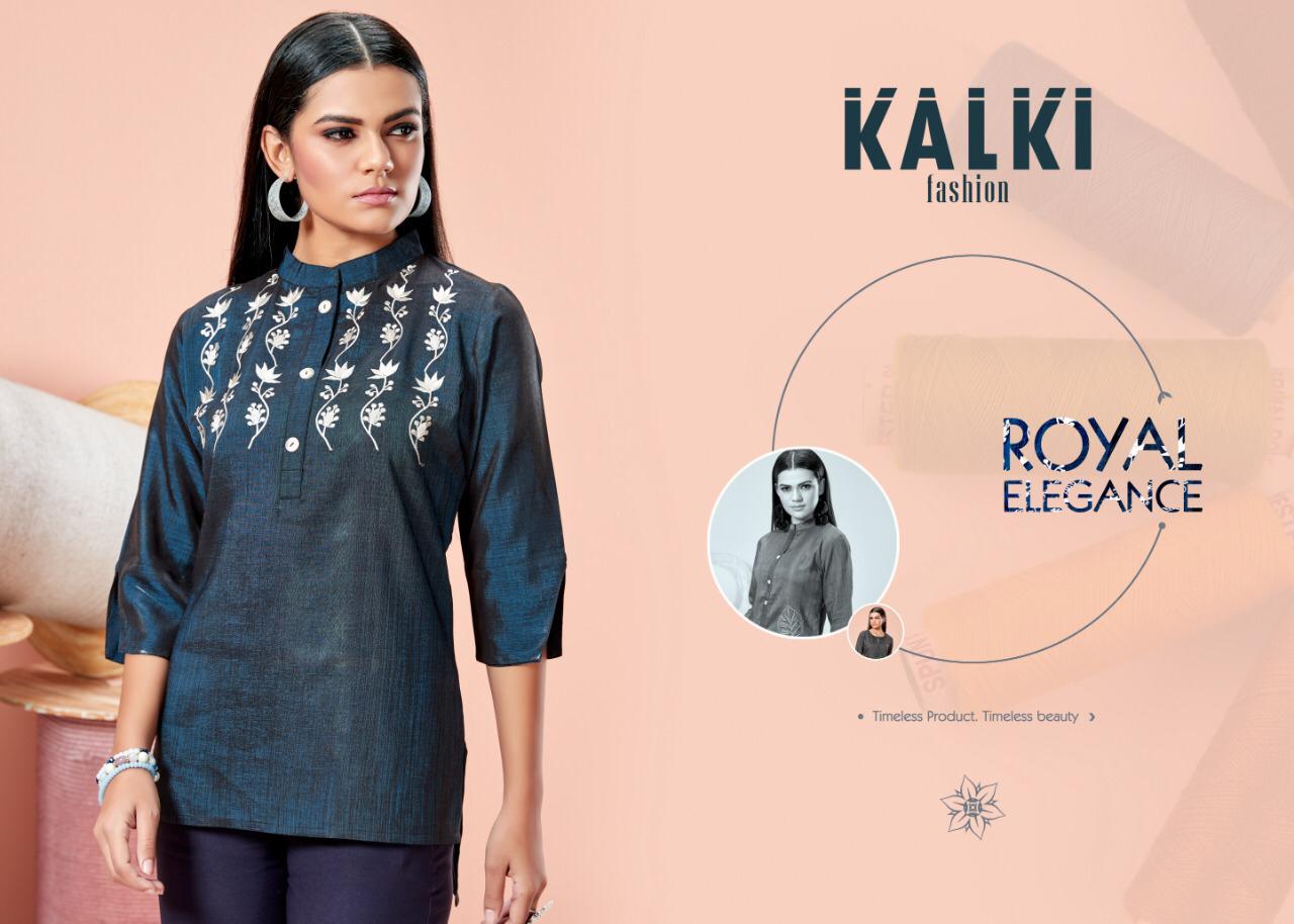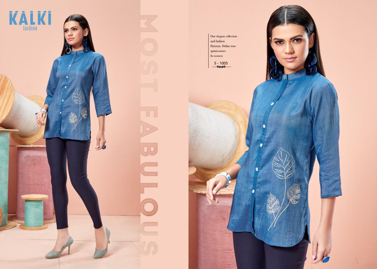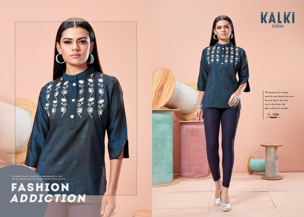 Rida By Kalki Fashion 1001 Series Fancy Denim Pure Silk Kurti Catlog Wholesaler Surat