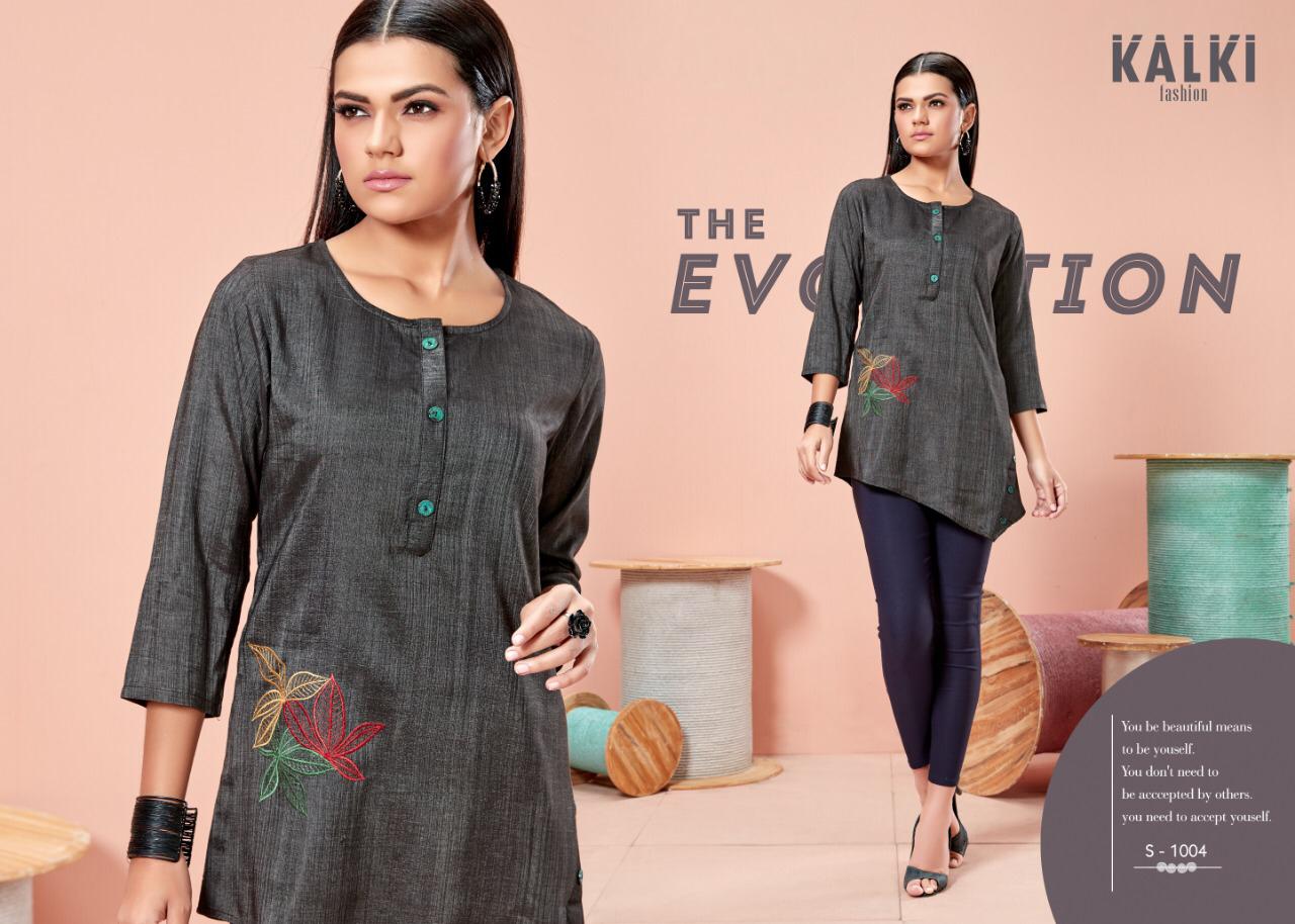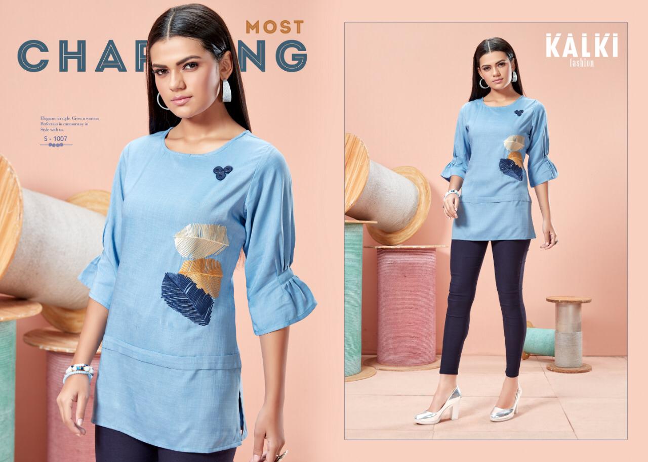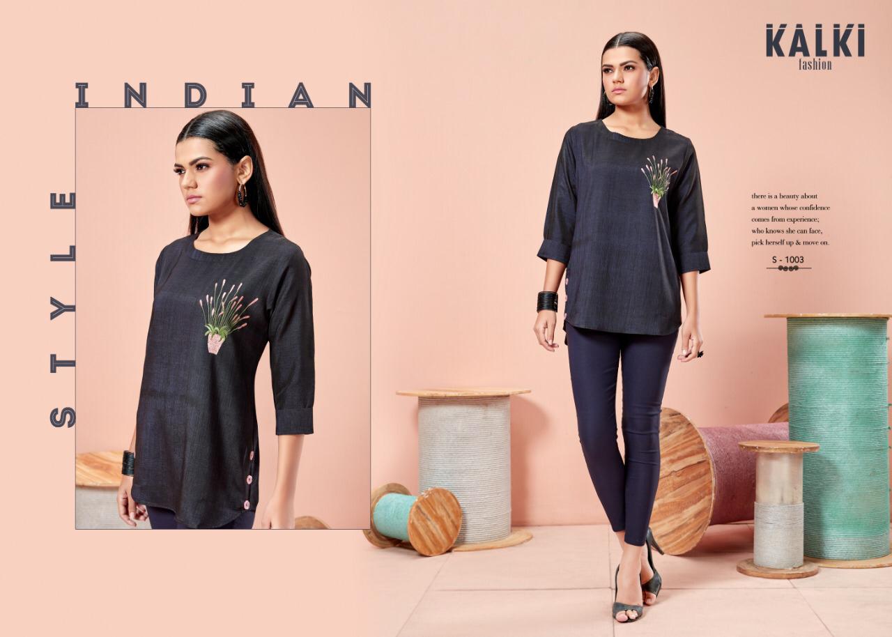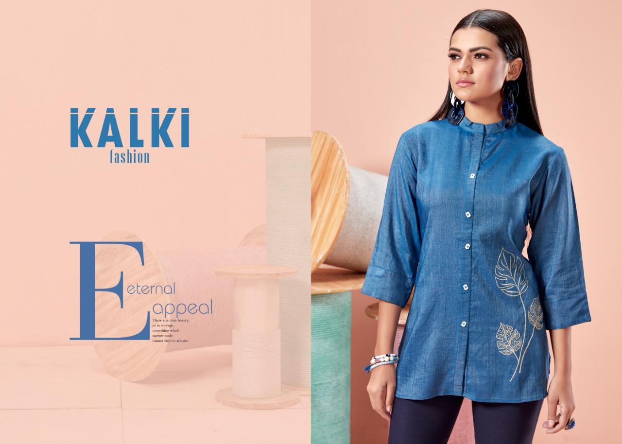 Rida By Kalki Fashion 1001 Series Fancy Denim Pure Silk Kurti Catlog Wholesaler Surat