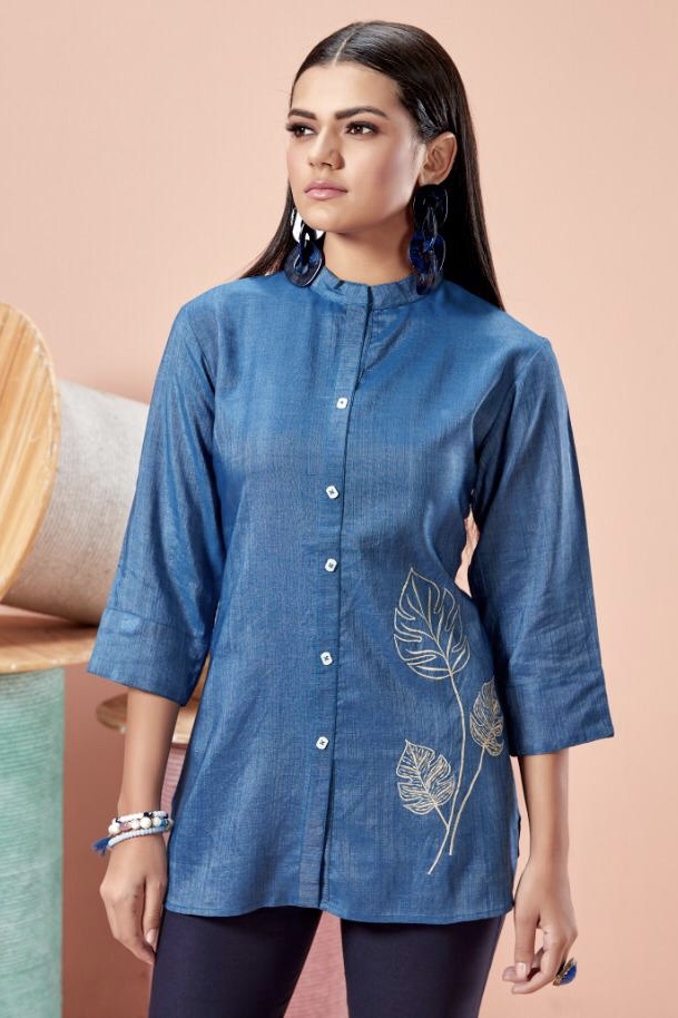 *??KALKI FASHION?? * Presents... *?RIDA - DENIM TOPS?* ?DENIM PURE SILK FABRICS WITH DESIGNER WORK STYLE -?TOPS PATTRENS? *Size M(38) L(40) Xl(42) XXL(44)* ?RATE - *450*? per Pcs . 5%Gst Set to set Delivery 5-6 days Brand - Kalki Fashion . Please note . Catlog name - RIDA DENIM TOPS |