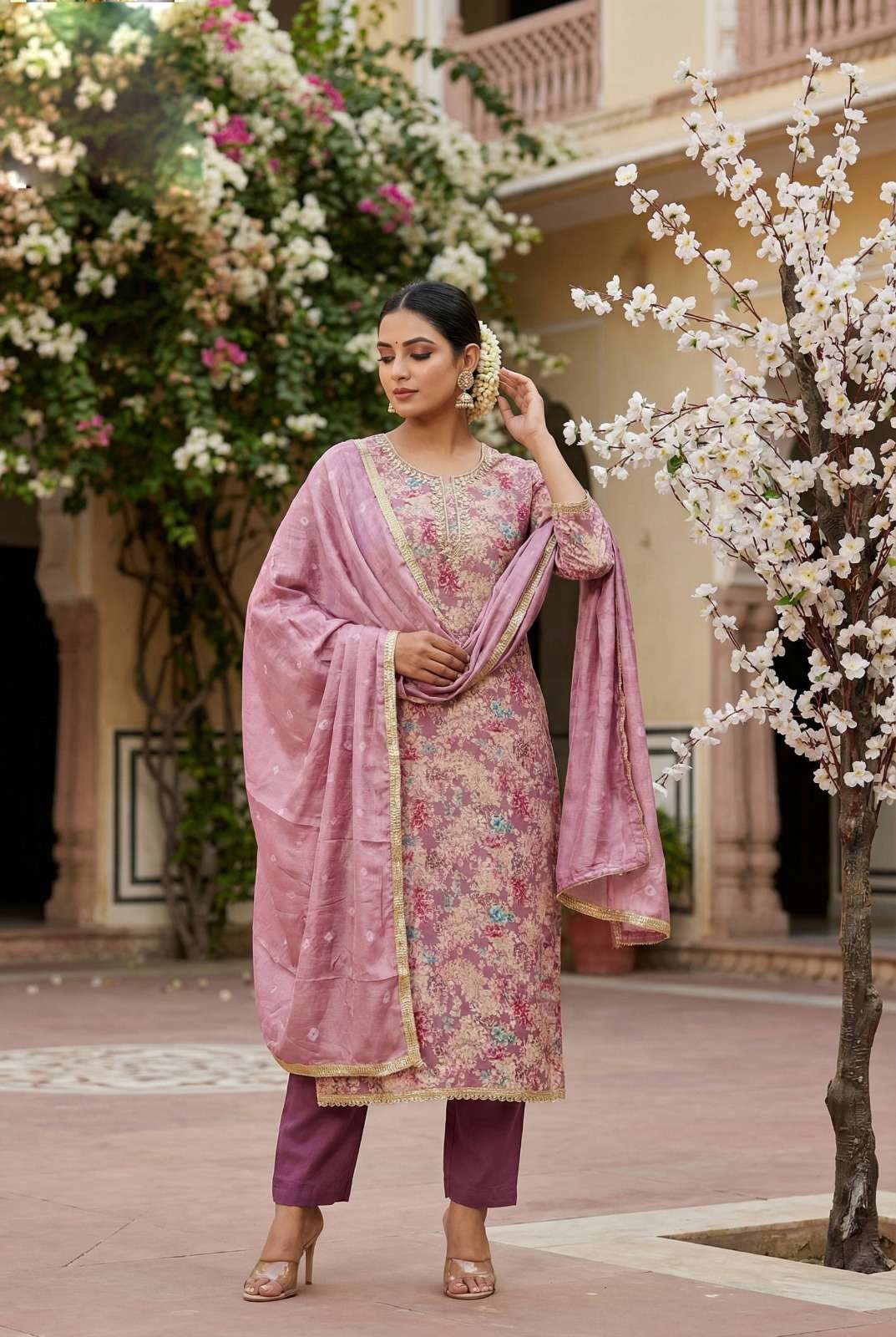 TOP-PURE MODAL PRINT WITH HAND WORK DUPATTA- NASMIN BANDANI BOTTOM-RAYON INNER -COTTON