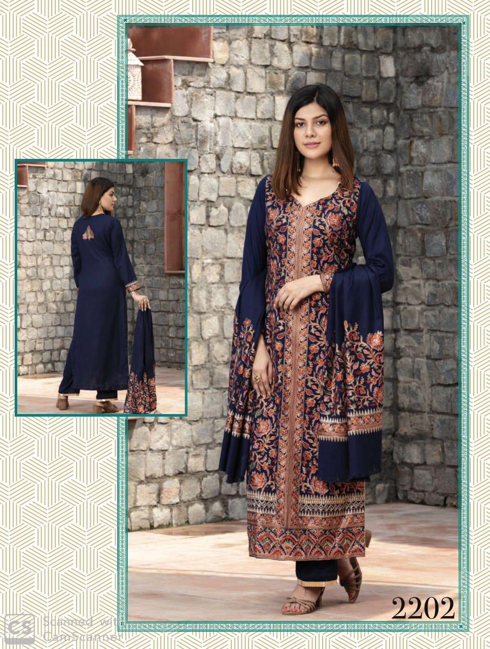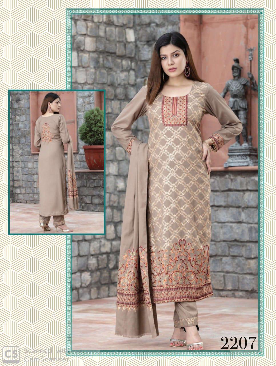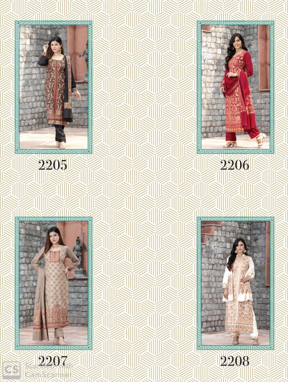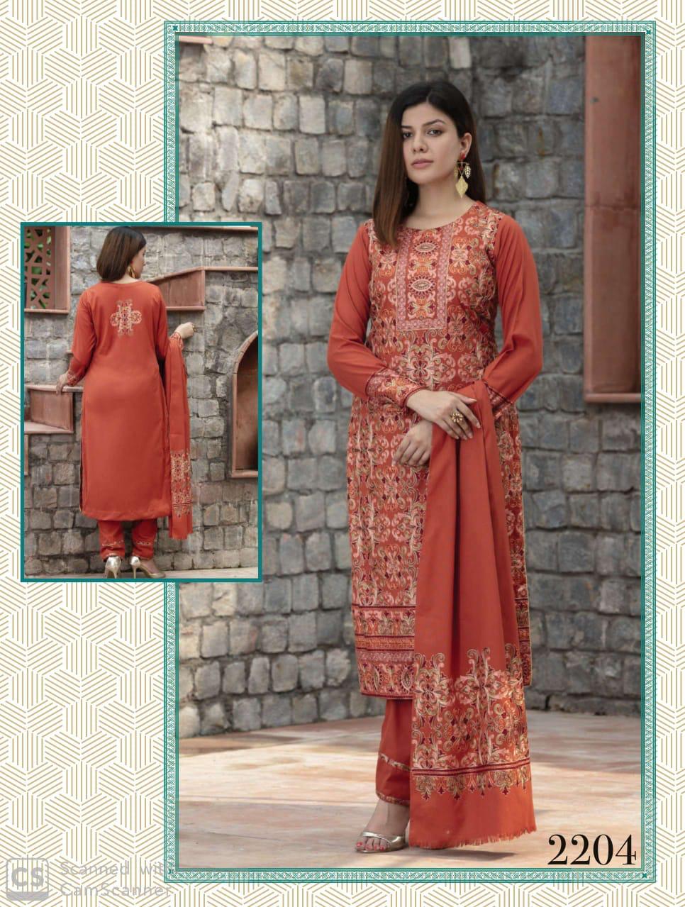 Buy Online Rivaa Afsana Woolen Fancy Embroidered Designer Suits Wholesale Supplier Surat 8 Pcs of Full Catalogue at Wholesale Price. Looking for Rivaa Afsana Woolen Fancy Embroidered Designer Suits Wholesale Supplier Surat Full Catalouge at Best Price? Buy Now Rivaa Afsana Woolen Fancy Embroidered Designer Suits Wholesale Supplier Surat at Wholesale Rate of Rs 17000 with Total 8 Pcs from authroized dealer and supplier of Brand. Cost of Each piece is just only Rs 2125 which is very low and affordable price to resale the product in your retail store ,This is Surat based Wholesale Supplier & Dealer of Brand. Click on Brand name to Know more about Brand's products.Call or Whatsapp on 9898838984 for booking or enquiry