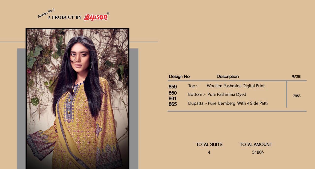 Buy Online Riwaha By Bipson Pashmina Dress Materials Wholesale Supplier India 4 Pcs of Full Catalogue at Wholesale Price. Looking for Riwaha By Bipson Pashmina Dress Materials Wholesale Supplier India Full Catalouge at Best Price? Buy Now Riwaha By Bipson Pashmina Dress Materials Wholesale Supplier India at Wholesale Rate of Rs 3180 with Total 4 Pcs from authroized dealer and supplier of BRAND'S Brand. Cost of Each piece is just only Rs 795 which is very low and affordable price to resale the product in your retail store ,This is Surat based Wholesale Supplier & Dealer of BRAND'S Brand. Click on Brand name to Know more about BRAND'S Brand's products.Call or Whatsapp on 9898838984 for booking or enquiry