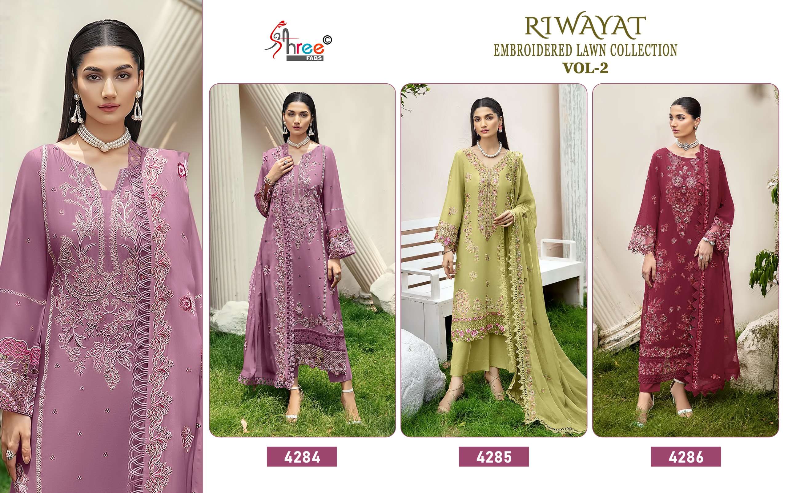 Buy Online RIWAYAT VOL 2 by Shree fab suit collection manufacturers surat 3 Pcs of Full Catalogue at Wholesale Price. Looking for RIWAYAT VOL 2 by Shree fab suit collection manufacturers surat Full Catalouge at Best Price? Buy Now RIWAYAT VOL 2 by Shree fab suit collection manufacturers surat at Wholesale Rate of Rs 0 with Total 3 Pcs from authroized dealer and supplier of BRAND'S Brand. Cost of Each piece is just only Rs 0 which is very low and affordable price to resale the product in your retail store ,This is Surat based Wholesale Supplier & Dealer of BRAND'S Brand. Click on Brand name to Know more about BRAND'S Brand's products.Call or Whatsapp on 9898838984 for booking or enquiry