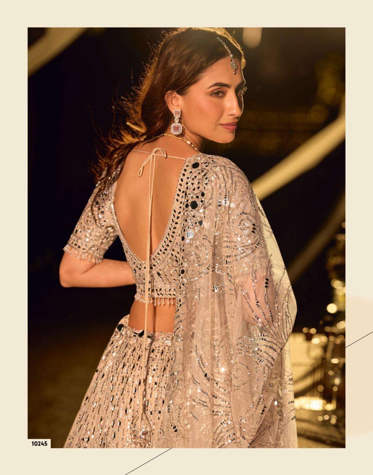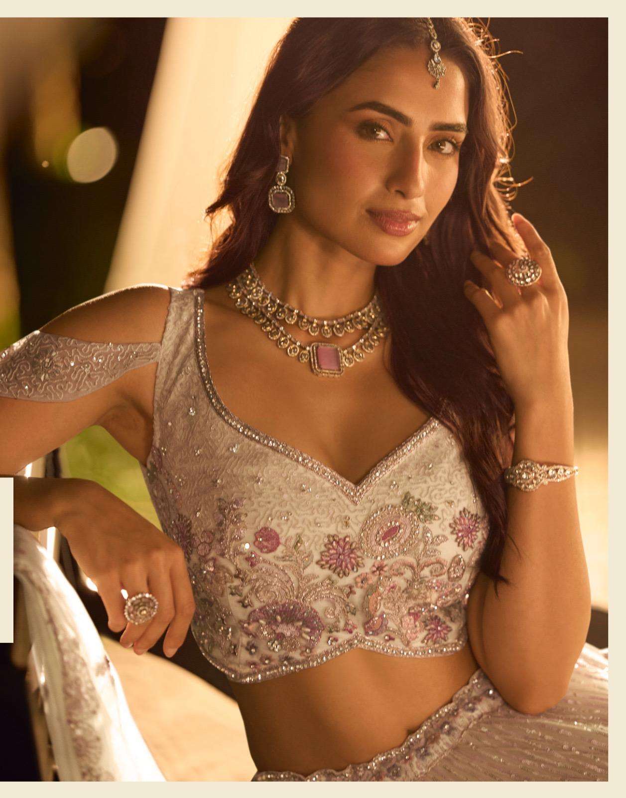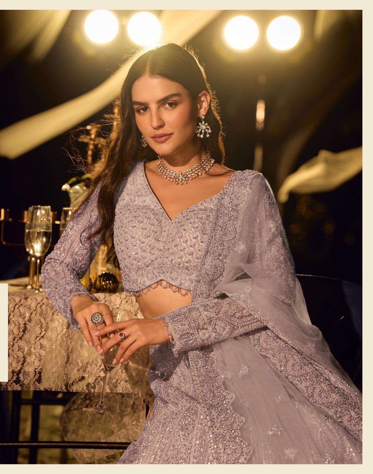 *FABRIC - PURE NET FULLY EMBROIDERED WITH FULL HEAVY HAND BEADS, PEARL, MIRROR AND SEROSKI HAND DIAMOND FRONT AND BACK WORK WITH CANCAN*