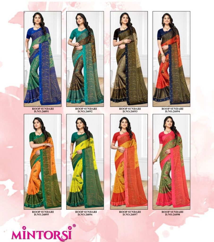 Buy Online Roop Sundari By Mintorsi Designer Saree Single And Set Stockiest And Supplier From Surat 8 Pcs of Full Catalogue at Wholesale Price. Looking for Roop Sundari By Mintorsi Designer Saree Single And Set Stockiest And Supplier From Surat Full Catalouge at Best Price? Buy Now Roop Sundari By Mintorsi Designer Saree Single And Set Stockiest And Supplier From Surat at Wholesale Rate of Rs 7600 with Total 8 Pcs from authroized dealer and supplier of Brand. Cost of Each piece is just only Rs 950 which is very low and affordable price to resale the product in your retail store ,This is Surat based Wholesale Supplier & Dealer of Brand. Click on Brand name to Know more about Brand's products.Call or Whatsapp on 9898838984 for booking or enquiry