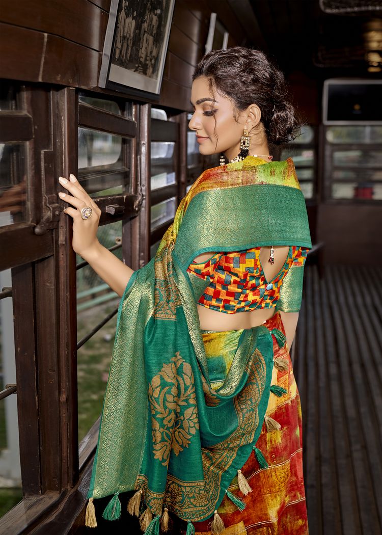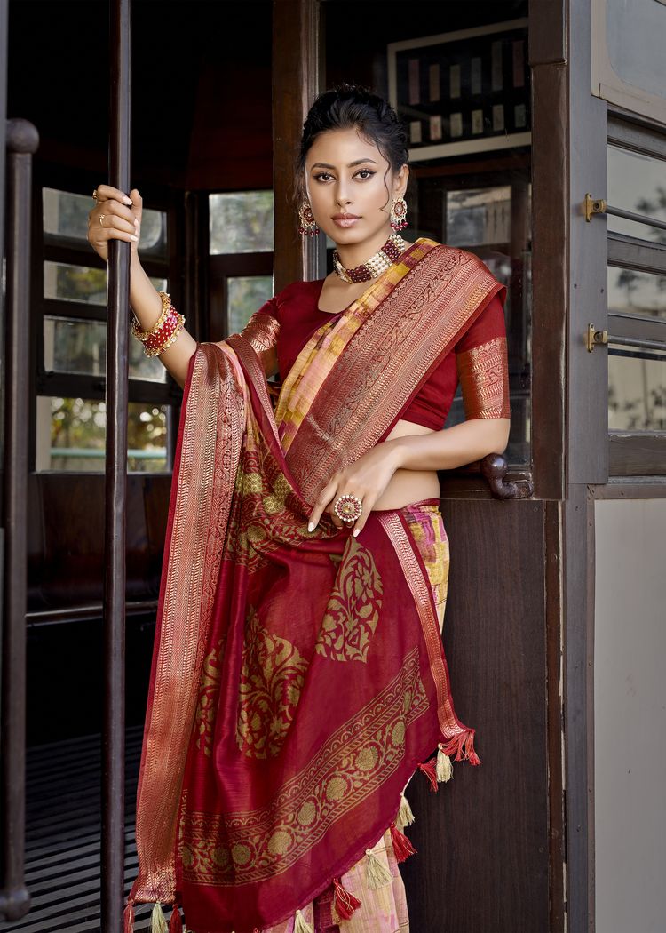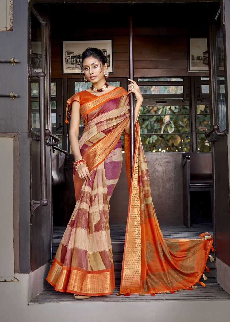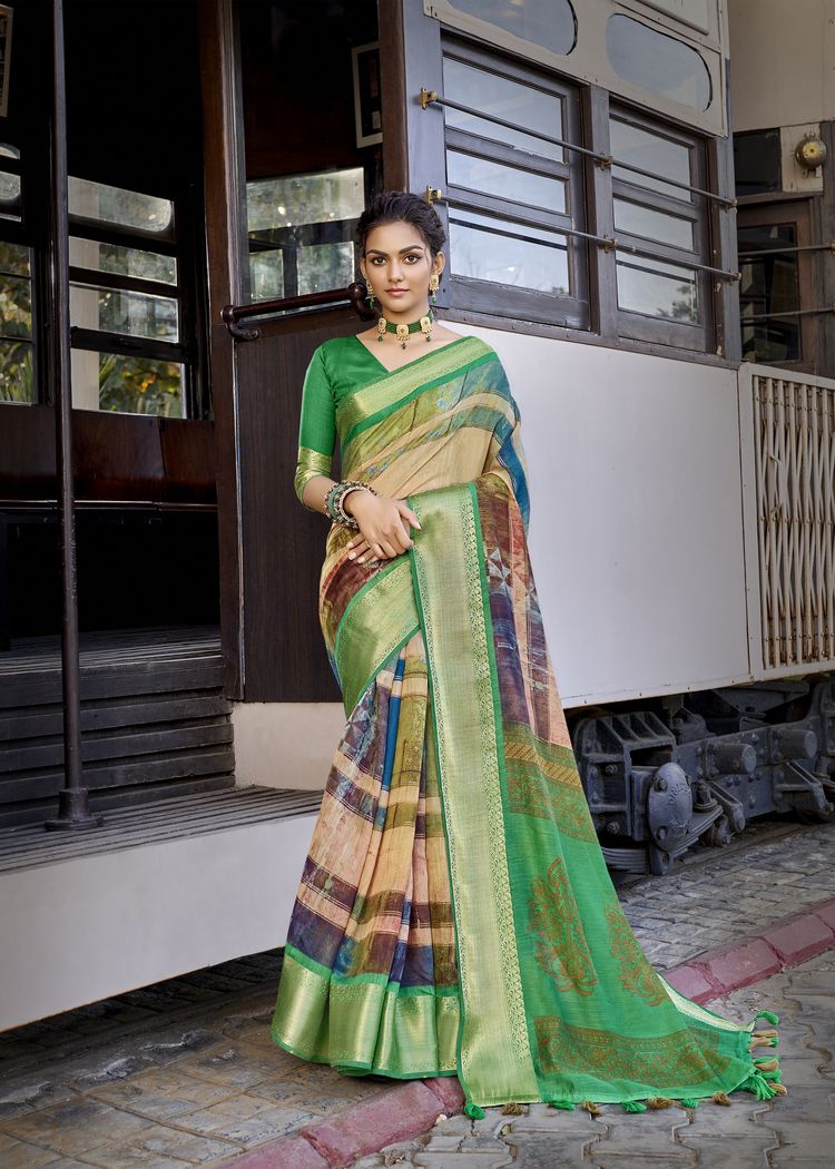 Catalog: Roop Sundari Rate:751 per PCÂ?s Brand: Triveni Fabric: Linen weaving border Piece:8 Set to set. Delivery from today |