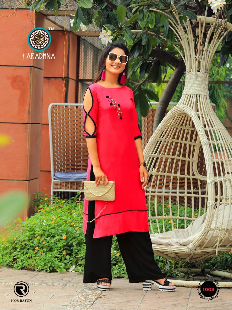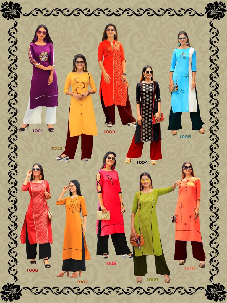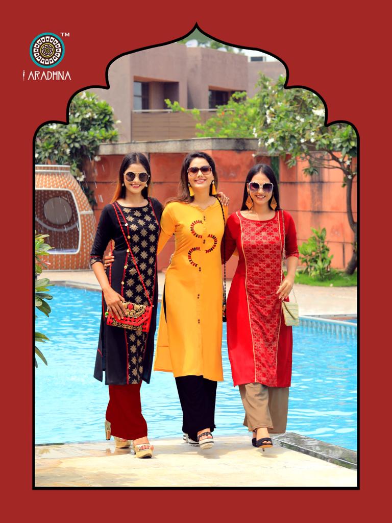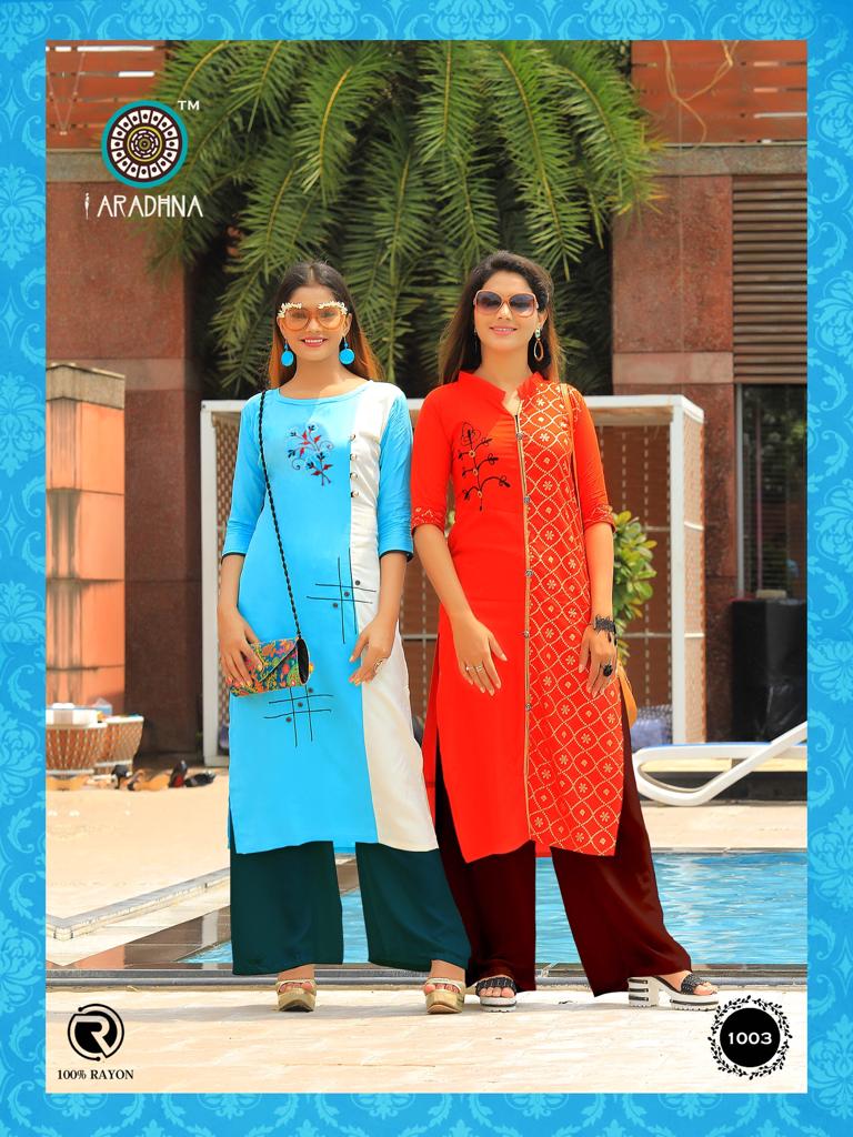 ? *ARADHNA* ? Catalog - *ROSE RIVERA VOL 3* Brand : ARADHNA Fabric : Heavy Rayon with Hand Work, Embroidery Work and ordinary print ?Size : M(38), L(40), XL(42), XXL(44), 3XL(46) ?Designs : 10 ?Rate : *360 Rs* + 5% GST Set To Set . Delivery from today |