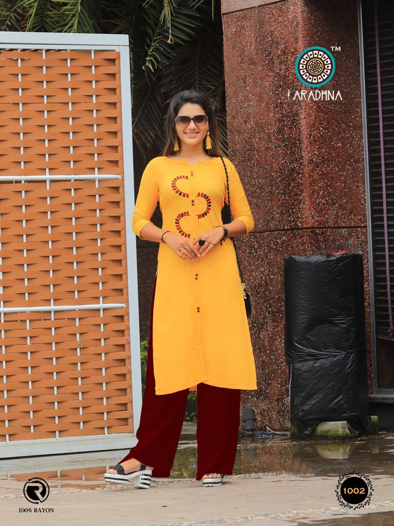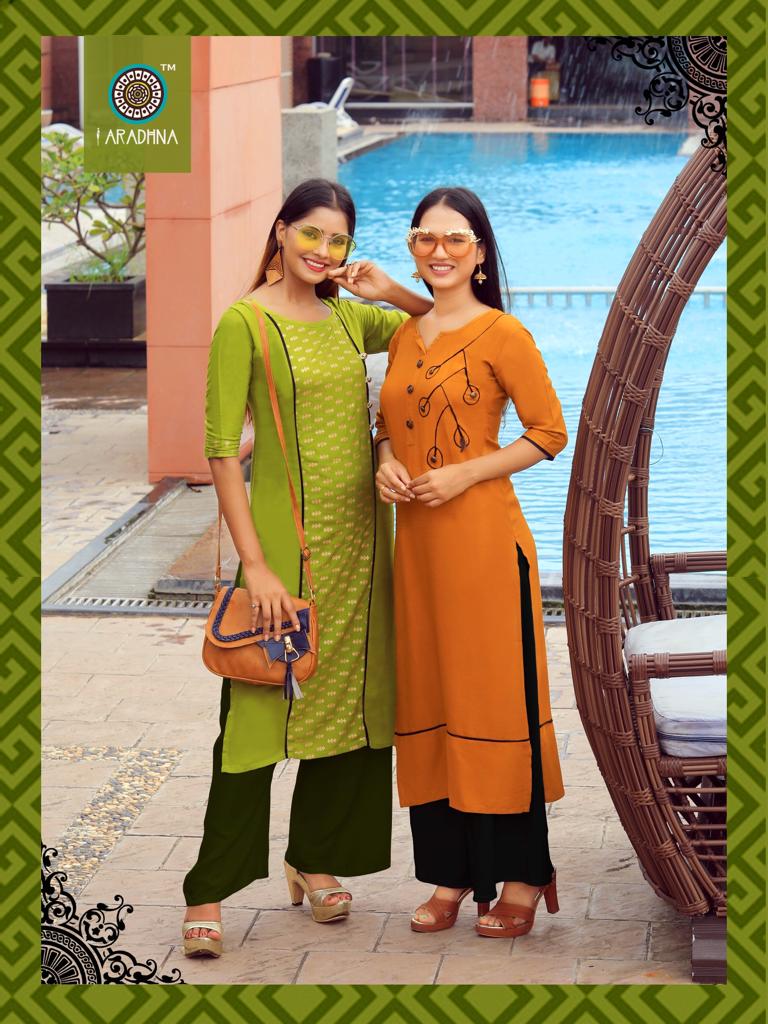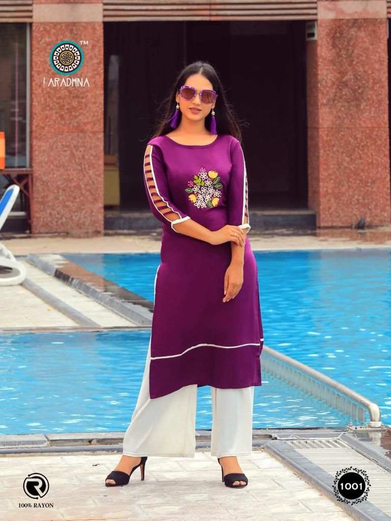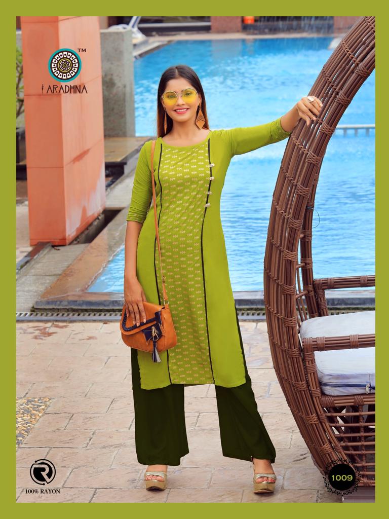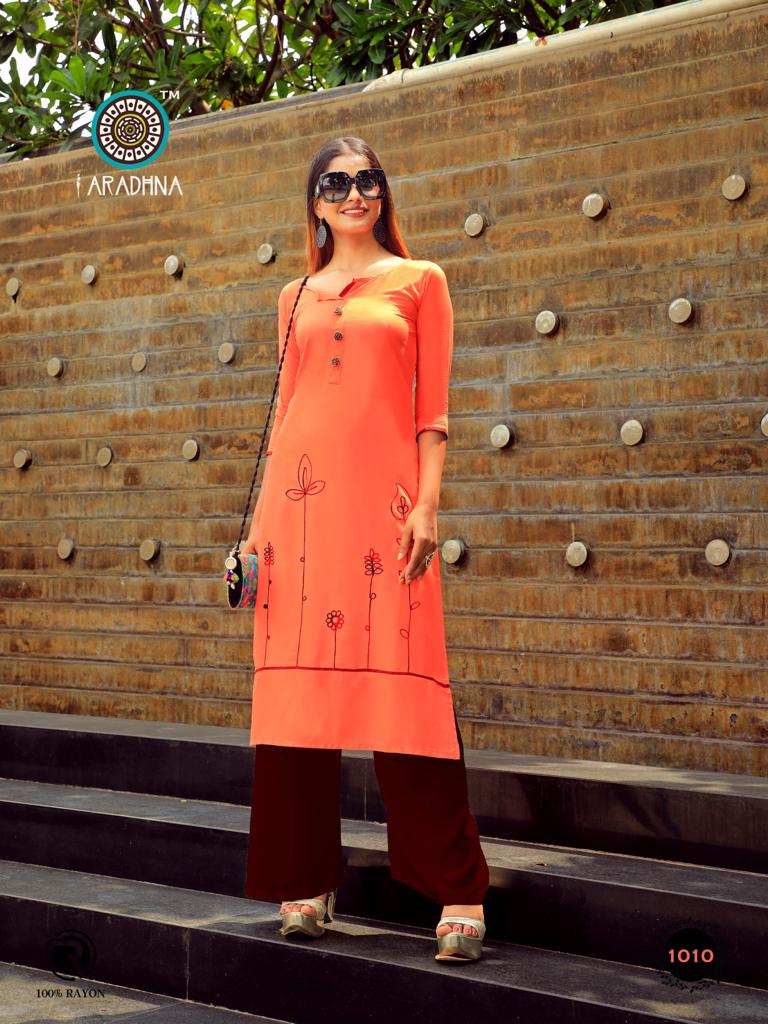 ? *ARADHNA* ? Catalog - *ROSE RIVERA VOL 3* Brand : ARADHNA Fabric : Heavy Rayon with Hand Work, Embroidery Work and ordinary print ?Size : M(38), L(40), XL(42), XXL(44), 3XL(46) ?Designs : 10 ?Rate : *360 Rs* + 5% GST Set To Set . Delivery from today |