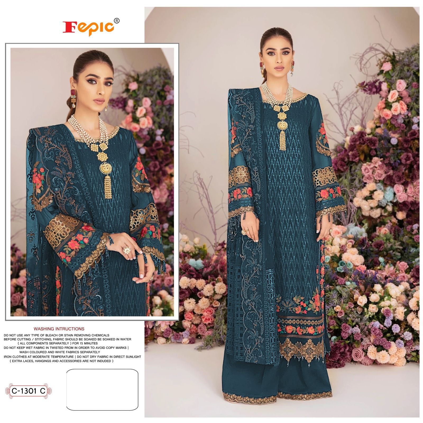 _BRAND NAME_:- FEPIC _CATALOUGE NAME_:- ROSEMEEN _D NO_:- C 1301 _Top_:- GEORGETTE EMBROIDERED _Dupatta_:- NET EMBROIDERED _Bottom_:- SANTOON WITH EMBROIDERED PAYAL BUNCHES _INNER_:- SANTOON _RATE_:-1311/- Gst ship extra 100+SINGLE |