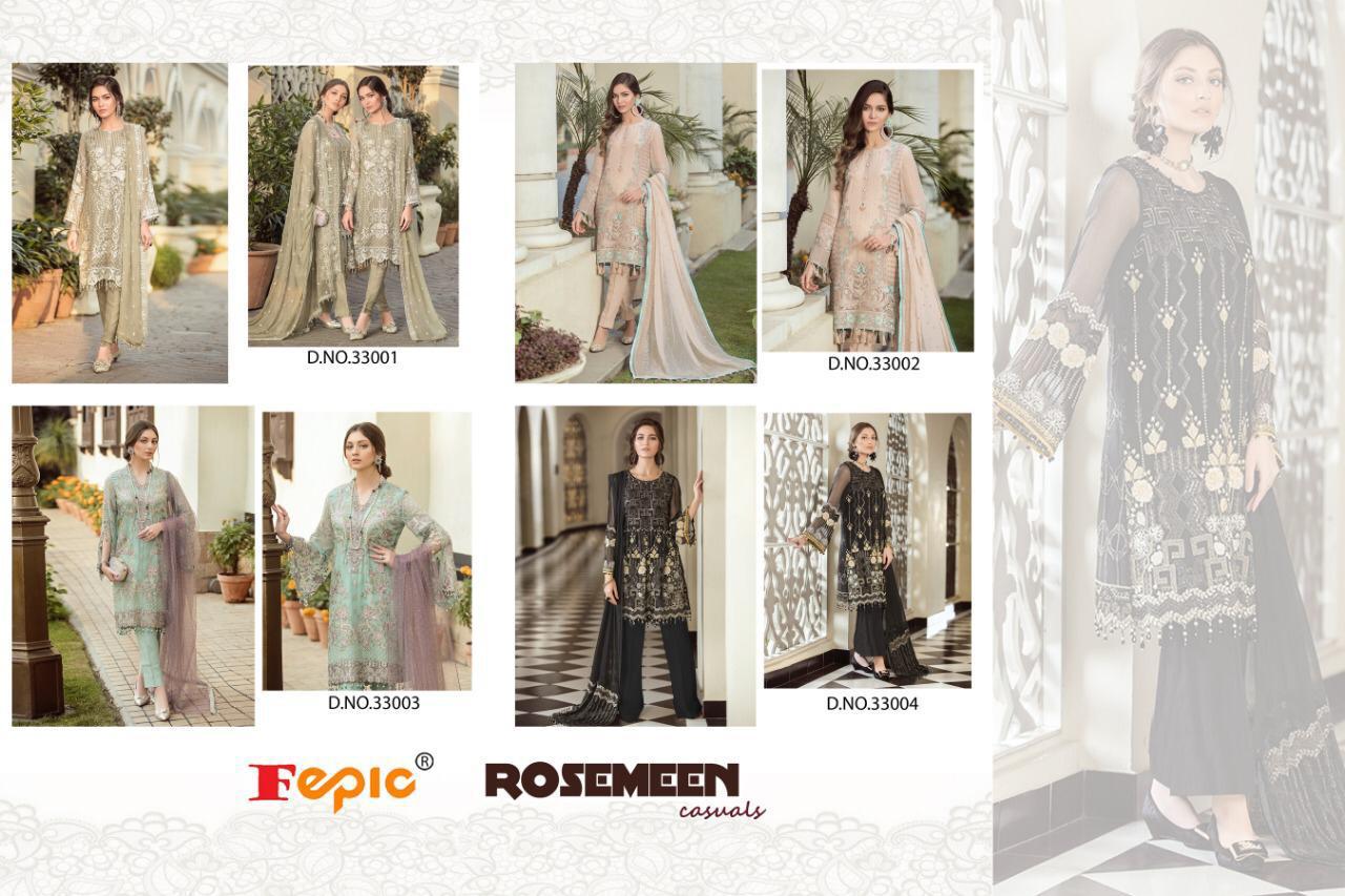 Buy Online Rosemeen Casuals By Fepic Georgette Embroidered Designer Party Wear Pakistani Suits Wholesale Supplier Gujarat 4 Pcs of Full Catalogue at Wholesale Price. Looking for Rosemeen Casuals By Fepic Georgette Embroidered Designer Party Wear Pakistani Suits Wholesale Supplier Gujarat Full Catalouge at Best Price? Buy Now Rosemeen Casuals By Fepic Georgette Embroidered Designer Party Wear Pakistani Suits Wholesale Supplier Gujarat at Wholesale Rate of Rs 4796 with Total 4 Pcs from authroized dealer and supplier of FEPIC Brand. Cost of Each piece is just only Rs 1199 which is very low and affordable price to resale the product in your retail store ,This is Surat based Wholesale Supplier & Dealer of FEPIC Brand. Click on Brand name to Know more about FEPIC Brand's products.Call or Whatsapp on 9898838984 for booking or enquiry