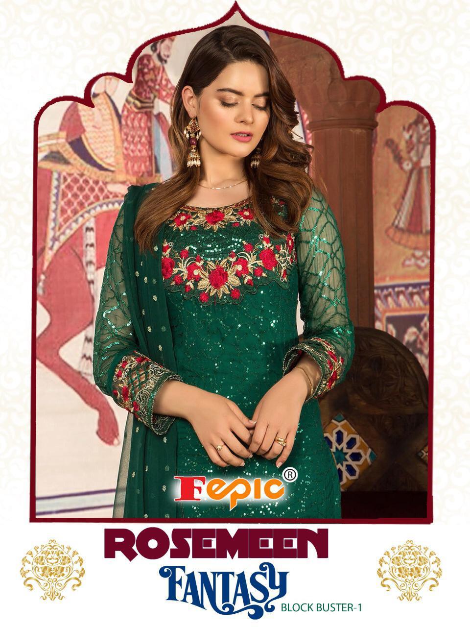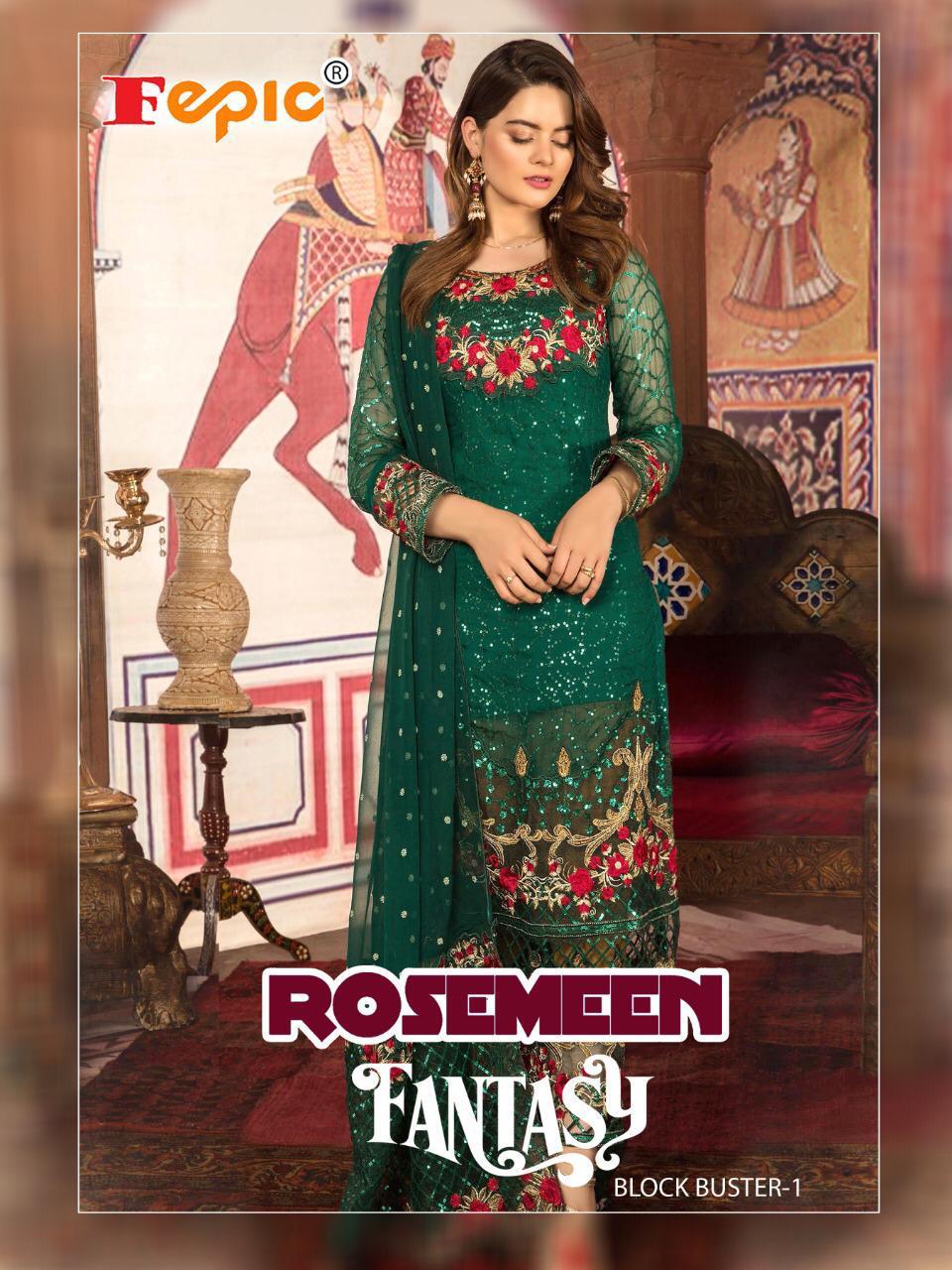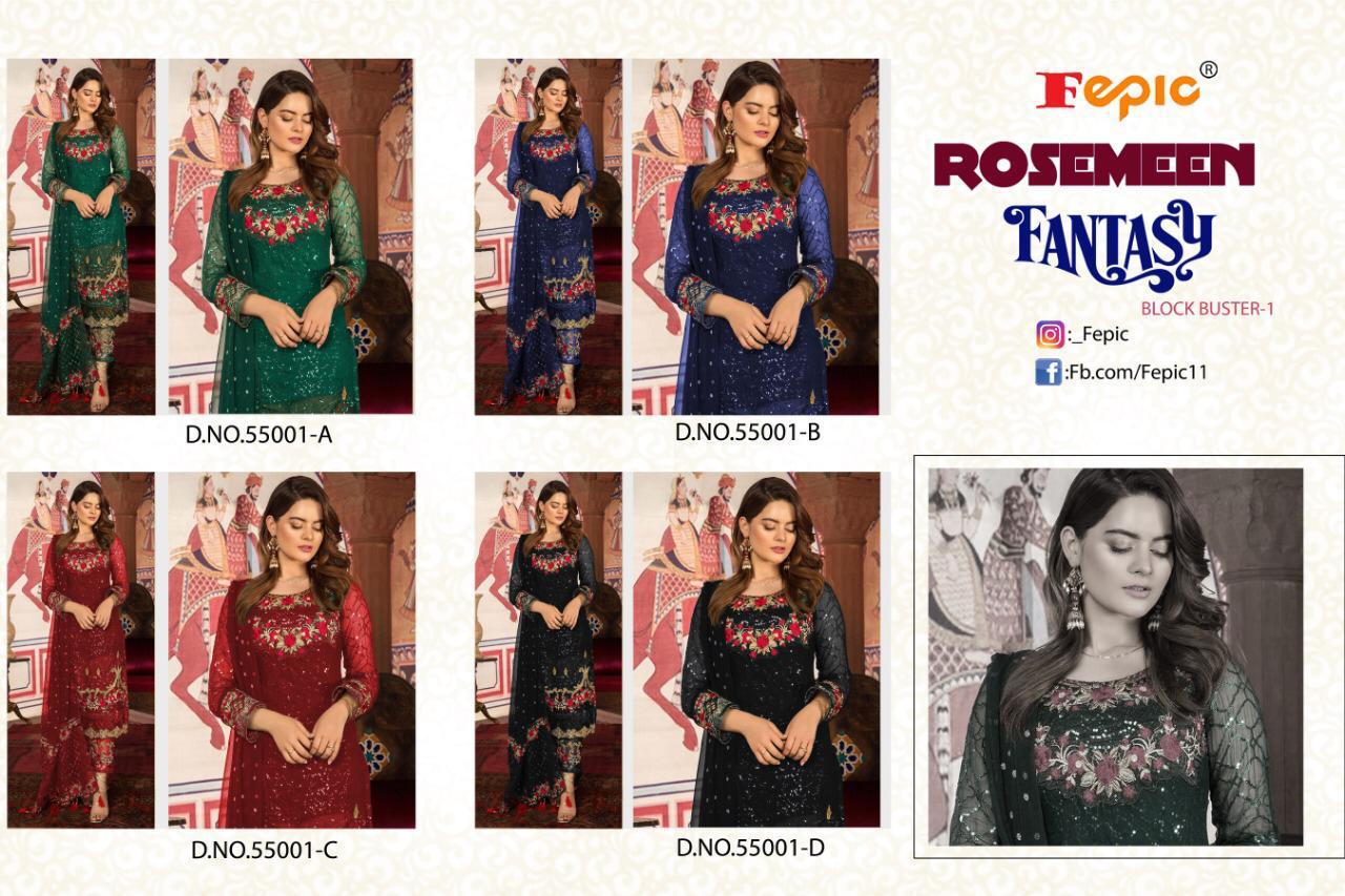 Buy Online Rosemeen Fantasy Blockbuster Vol 1 By Fepic Series 55001a Designer Pakistani Suits Wholesale Supplier Gujarat 4 Pcs of Full Catalogue at Wholesale Price. Looking for Rosemeen Fantasy Blockbuster Vol 1 By Fepic Series 55001a Designer Pakistani Suits Wholesale Supplier Gujarat Full Catalouge at Best Price? Buy Now Rosemeen Fantasy Blockbuster Vol 1 By Fepic Series 55001a Designer Pakistani Suits Wholesale Supplier Gujarat at Wholesale Rate of Rs 5036 with Total 4 Pcs from authroized dealer and supplier of FEPIC Brand. Cost of Each piece is just only Rs 1259 which is very low and affordable price to resale the product in your retail store ,This is Surat based Wholesale Supplier & Dealer of FEPIC Brand. Click on Brand name to Know more about FEPIC Brand's products.Call or Whatsapp on 9898838984 for booking or enquiry