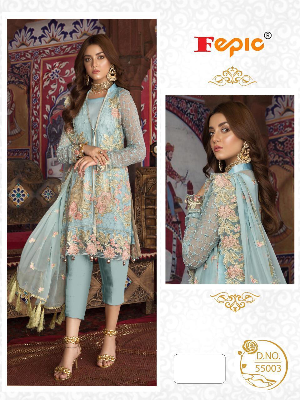 Buy Online Rosemeen Fantasy By Fepic Series 55001 To 55005 Georgette Embroidered Pakistani Suits Wholesale Supplier Gujarat 5 Pcs of Full Catalogue at Wholesale Price. Looking for Rosemeen Fantasy By Fepic Series 55001 To 55005 Georgette Embroidered Pakistani Suits Wholesale Supplier Gujarat Full Catalouge at Best Price? Buy Now Rosemeen Fantasy By Fepic Series 55001 To 55005 Georgette Embroidered Pakistani Suits Wholesale Supplier Gujarat at Wholesale Rate of Rs 6295 with Total 5 Pcs from authroized dealer and supplier of FEPIC Brand. Cost of Each piece is just only Rs 1259 which is very low and affordable price to resale the product in your retail store ,This is Surat based Wholesale Supplier & Dealer of FEPIC Brand. Click on Brand name to Know more about FEPIC Brand's products.Call or Whatsapp on 9898838984 for booking or enquiry