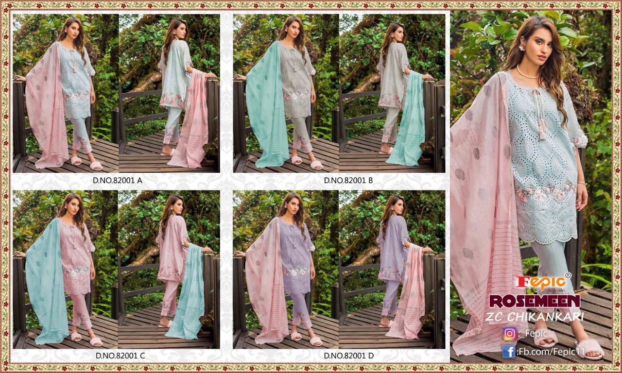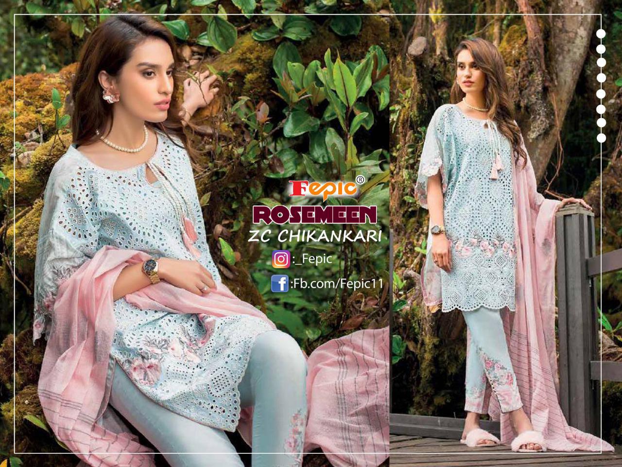 Buy Online Rosemeen Zc Chikankari By Fepic Pakistani Suits Wholesale Supplier And Dealer Gujarat 4 Pcs of Full Catalogue at Wholesale Price. Looking for Rosemeen Zc Chikankari By Fepic Pakistani Suits Wholesale Supplier And Dealer Gujarat Full Catalouge at Best Price? Buy Now Rosemeen Zc Chikankari By Fepic Pakistani Suits Wholesale Supplier And Dealer Gujarat at Wholesale Rate of Rs 3404 with Total 4 Pcs from authroized dealer and supplier of FEPIC Brand. Cost of Each piece is just only Rs 851 which is very low and affordable price to resale the product in your retail store ,This is Surat based Wholesale Supplier & Dealer of FEPIC Brand. Click on Brand name to Know more about FEPIC Brand's products.Call or Whatsapp on 9898838984 for booking or enquiry