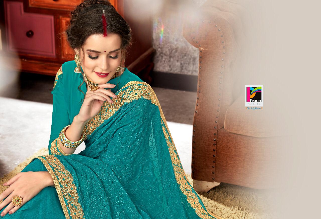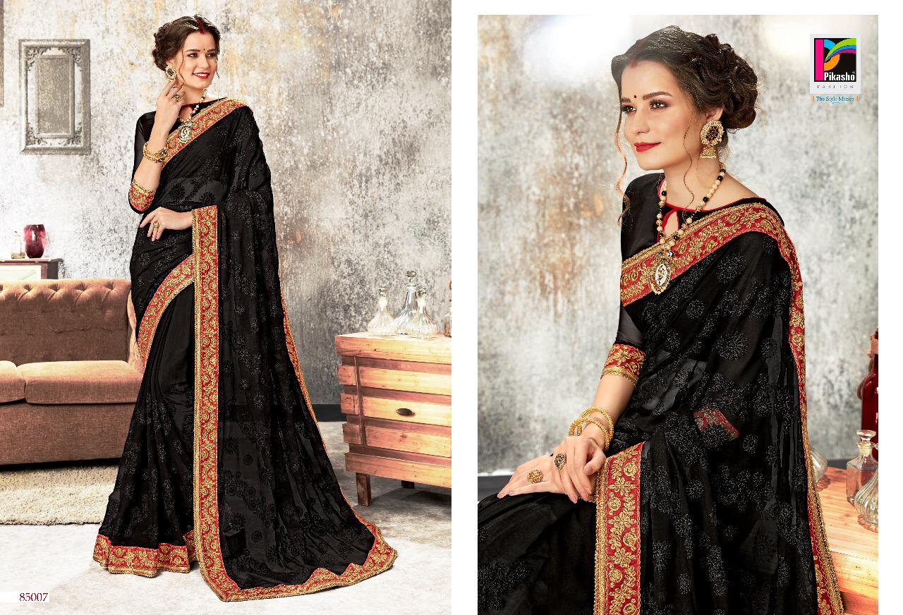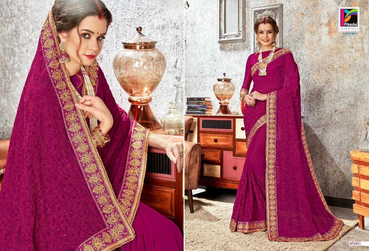 Buy Online Royalty By Pikasho 85001 Series Fancy Party Wear Saree Collection Wholesale Dealer Surat 8 Pcs of Full Catalogue at Wholesale Price. Looking for Royalty By Pikasho 85001 Series Fancy Party Wear Saree Collection Wholesale Dealer Surat Full Catalouge at Best Price? Buy Now Royalty By Pikasho 85001 Series Fancy Party Wear Saree Collection Wholesale Dealer Surat at Wholesale Rate of Rs 9200 with Total 8 Pcs from authroized dealer and supplier of Pikasho Fashion Brand. Cost of Each piece is just only Rs 1150 which is very low and affordable price to resale the product in your retail store ,This is Surat based Wholesale Supplier & Dealer of Pikasho Fashion Brand. Click on Brand name to Know more about Pikasho Fashion Brand's products.Call or Whatsapp on 9898838984 for booking or enquiry
