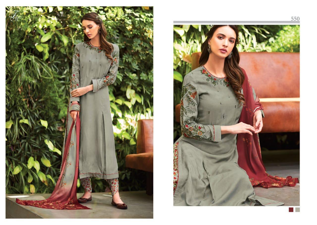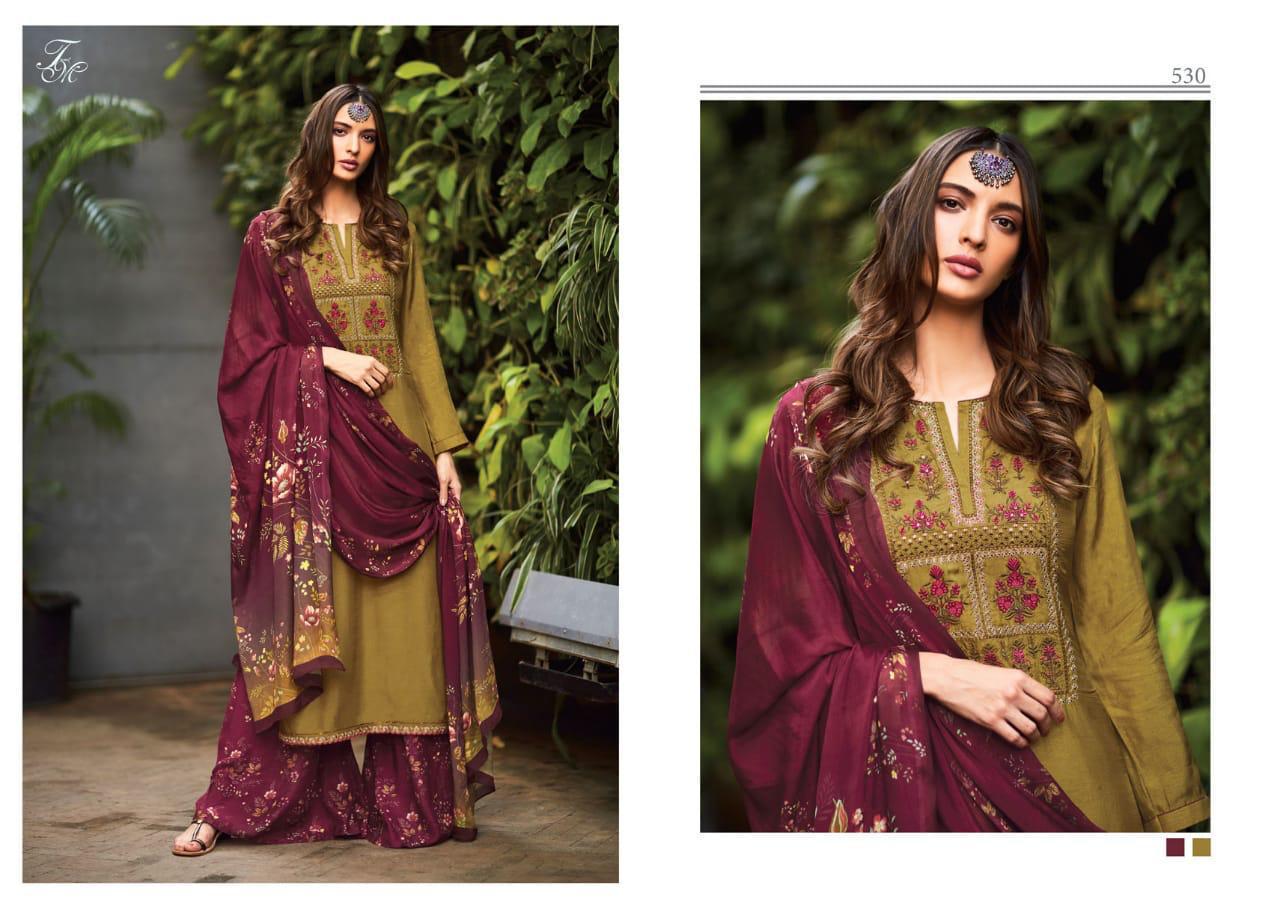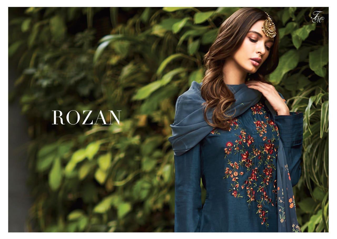 *T&M* Presents its latest catalogue *ROZAN* Pure raw silk top with embroidery work with cotton silk heavy digital printed bottom and pure chinon digital printed bottom *2395?* 5%Gst Applicable Set to set Delivery Thursday |