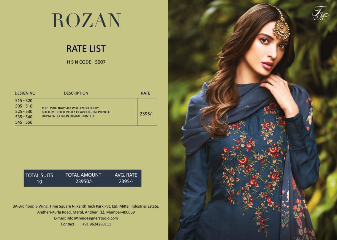 Rozan By T N M Sahiba Fancy Designer Party Wear Pure Raw Silk Salwar Kameez Catlog Wholesale Dealer Surat
