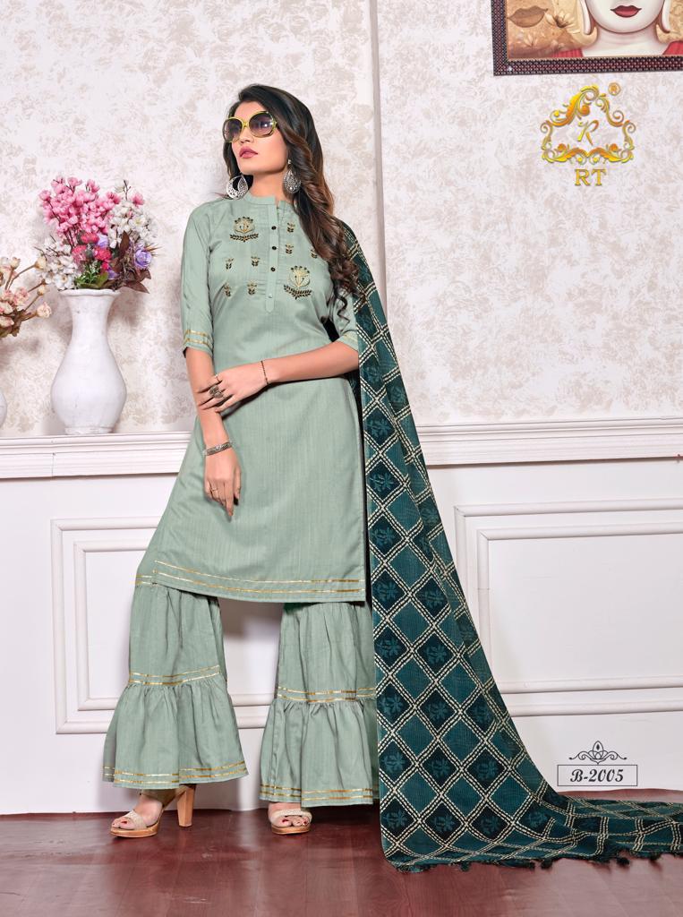 Buy Online Rt Pastel Vol 2 Designer Kurtis Plazzo Dupatta Wholesale Supplier And Dealer Surat 4 Pcs of Full Catalogue at Wholesale Price. Looking for Rt Pastel Vol 2 Designer Kurtis Plazzo Dupatta Wholesale Supplier And Dealer Surat Full Catalouge at Best Price? Buy Now Rt Pastel Vol 2 Designer Kurtis Plazzo Dupatta Wholesale Supplier And Dealer Surat at Wholesale Rate of Rs 3596 with Total 4 Pcs from authroized dealer and supplier of Brand. Cost of Each piece is just only Rs 899 which is very low and affordable price to resale the product in your retail store ,This is Surat based Wholesale Supplier & Dealer of Brand. Click on Brand name to Know more about Brand's products.Call or Whatsapp on 9898838984 for booking or enquiry