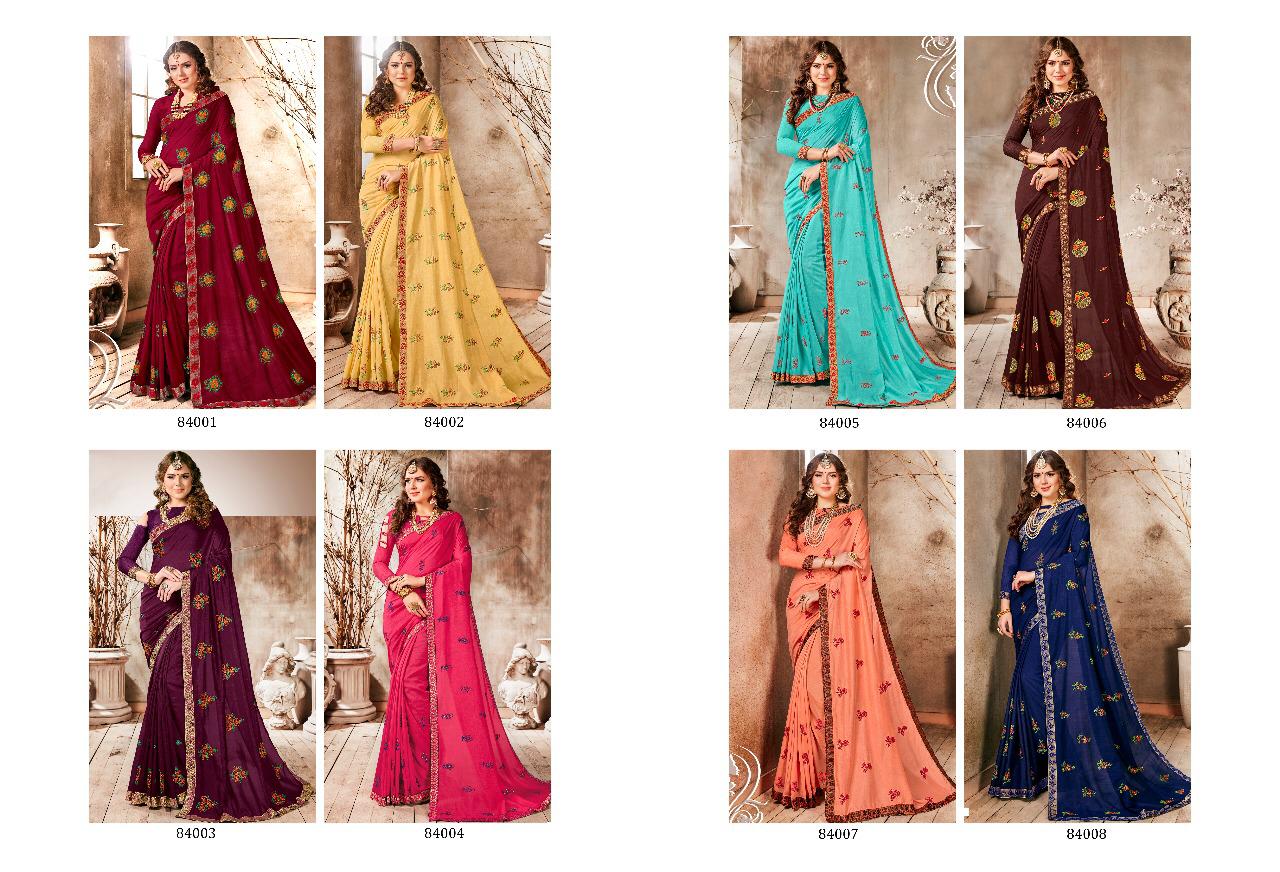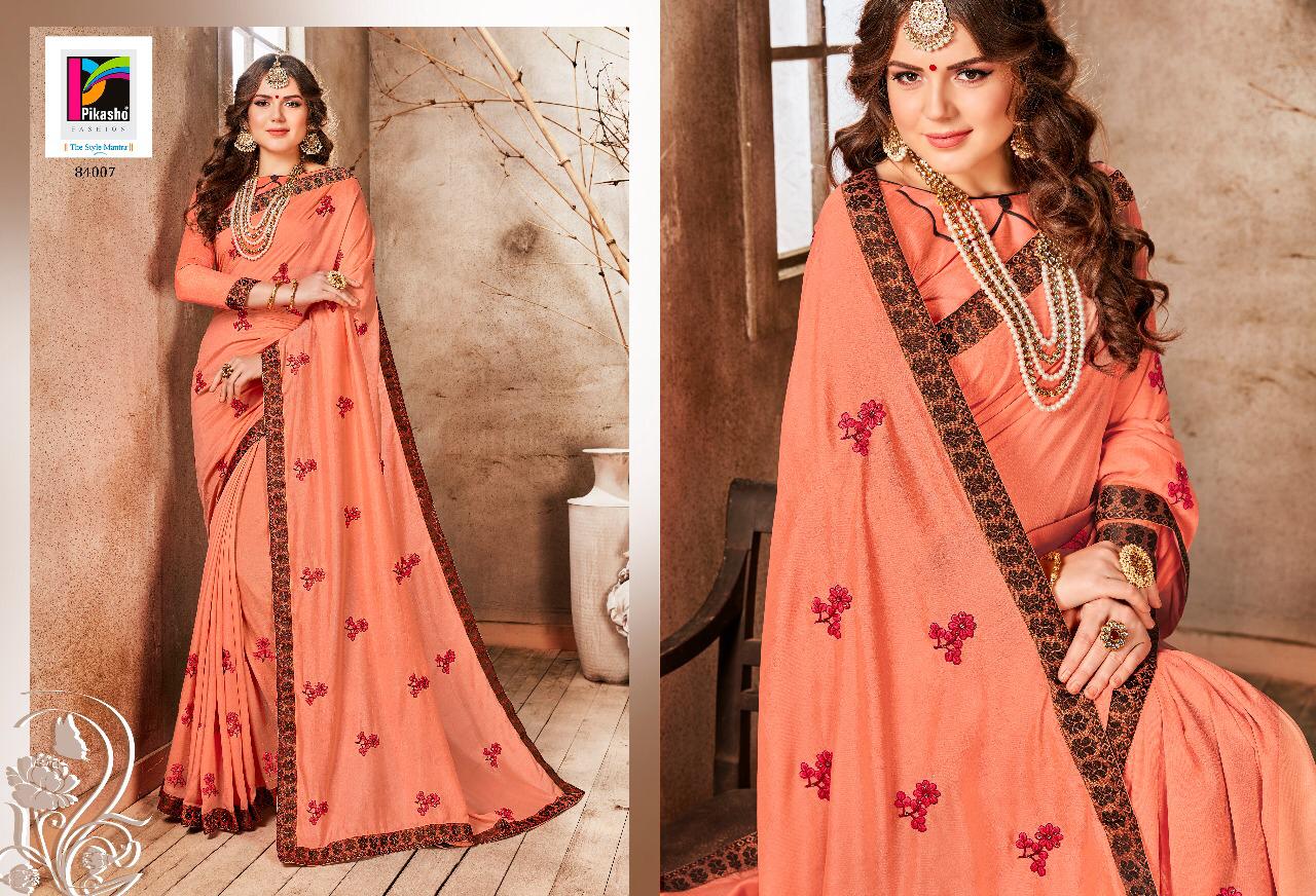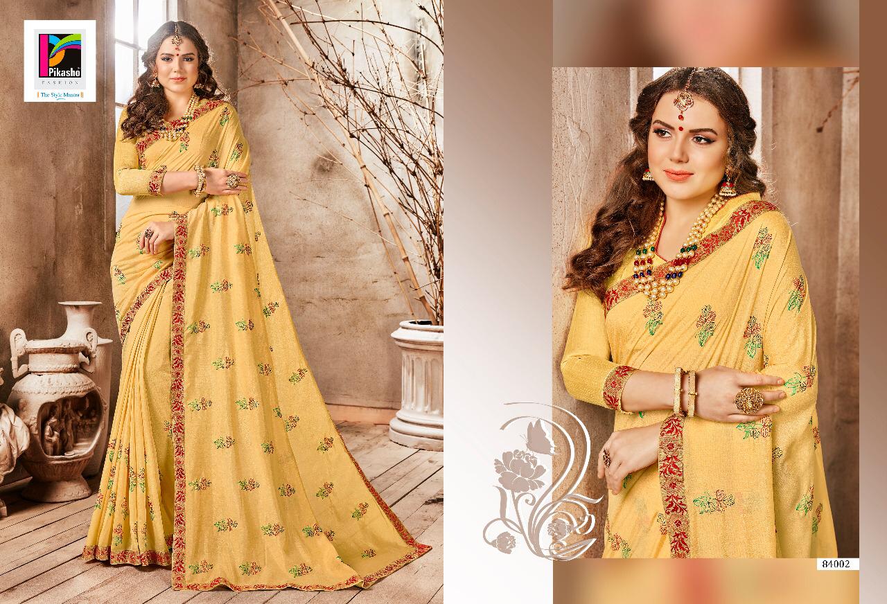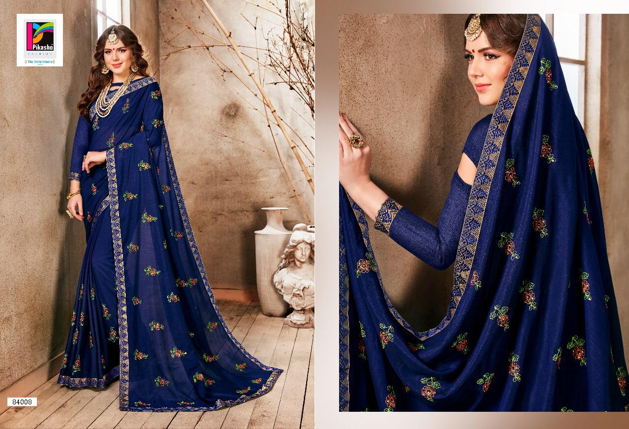 Buy Online Ruchi By Pikasho 84001 Series Fancy Party Wear Sarees Catlog Wholesaler Surat 8 Pcs of Full Catalogue at Wholesale Price. Looking for Ruchi By Pikasho 84001 Series Fancy Party Wear Sarees Catlog Wholesaler Surat Full Catalouge at Best Price? Buy Now Ruchi By Pikasho 84001 Series Fancy Party Wear Sarees Catlog Wholesaler Surat at Wholesale Rate of Rs 4760 with Total 8 Pcs from authroized dealer and supplier of Pikasho Fashion Brand. Cost of Each piece is just only Rs 595 which is very low and affordable price to resale the product in your retail store ,This is Surat based Wholesale Supplier & Dealer of Pikasho Fashion Brand. Click on Brand name to Know more about Pikasho Fashion Brand's products.Call or Whatsapp on 9898838984 for booking or enquiry
