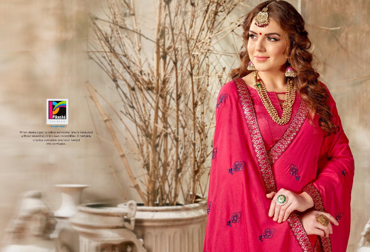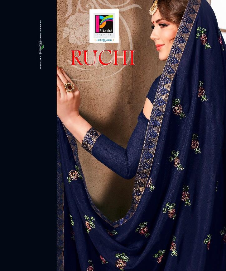 Brand - Pikaso . Catlog name - RUCHI . Fabric- Vichitra. Rate -595 per pcs : Set To Set. GST 5 Percent Extra. Delivery 2-3 days . |
