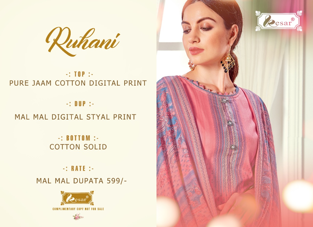 Buy Online Ruhani By Kesar Dress Materials Wholesale Supplier India 6 Pcs of Full Catalogue at Wholesale Price. Looking for Ruhani By Kesar Dress Materials Wholesale Supplier India Full Catalouge at Best Price? Buy Now Ruhani By Kesar Dress Materials Wholesale Supplier India at Wholesale Rate of Rs 3330 with Total 6 Pcs from authroized dealer and supplier of Brand. Cost of Each piece is just only Rs 555 which is very low and affordable price to resale the product in your retail store ,This is Surat based Wholesale Supplier & Dealer of Brand. Click on Brand name to Know more about Brand's products.Call or Whatsapp on 9898838984 for booking or enquiry