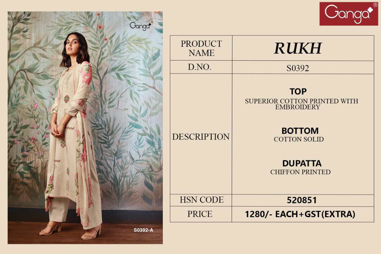 *GANGA* *RUKH 392* *NON CATALOGUE* *TOP-SUPERIOR COTTON PRINTED WITH EMBROIDERY* *BOTTOM-COTTON* *DUPATTA-CHIFFON PRINTED* DELIVERY TOMOROW BOOK NOW SET TO SET |