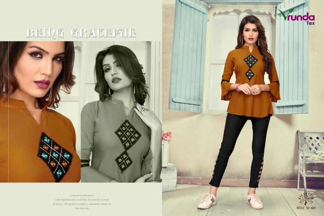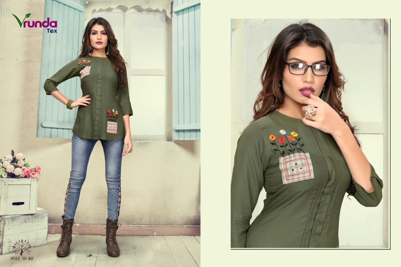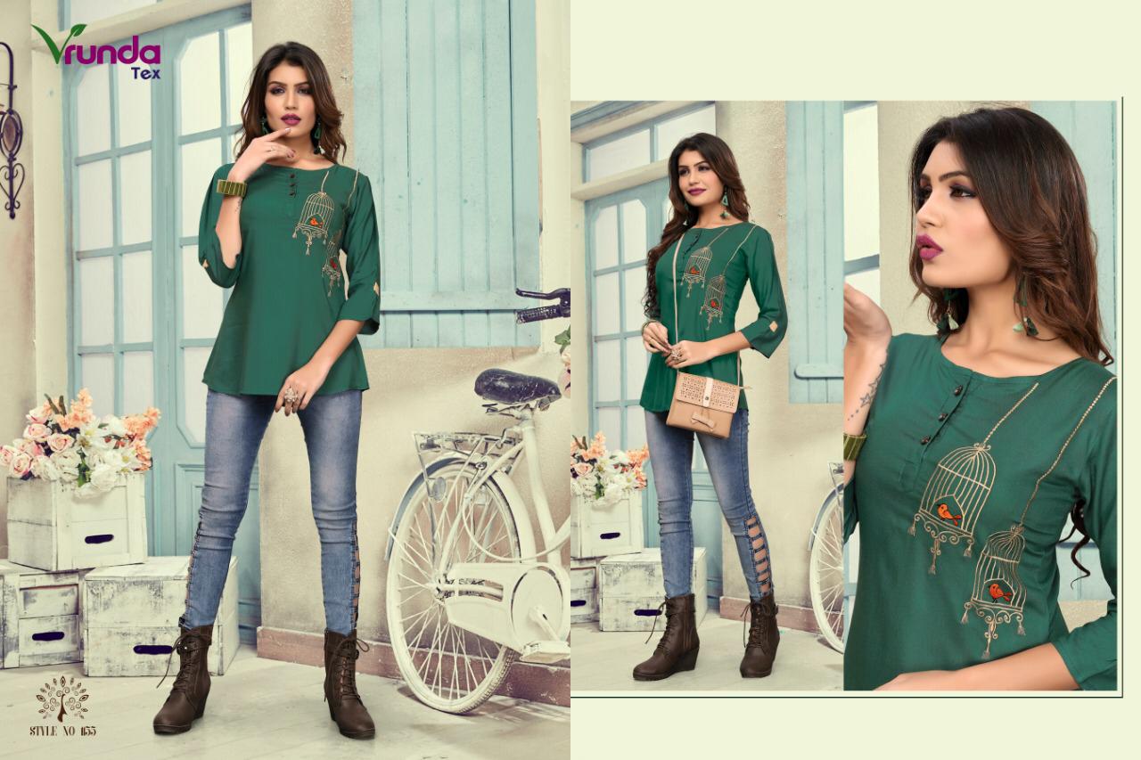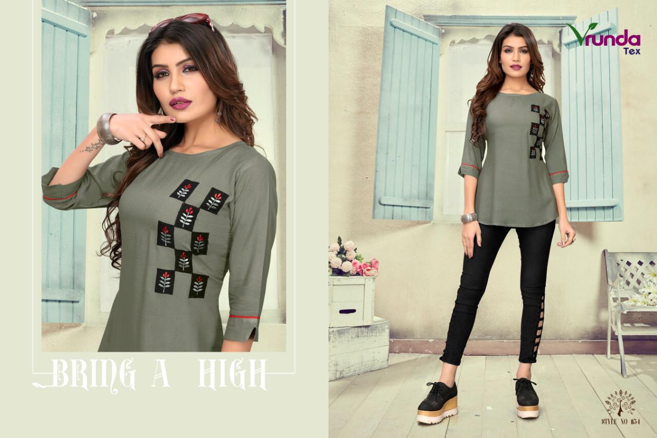 Buy Online Rutva By Vrunda Tex Western Tops Wholesale Supplier Surat 7 Pcs of Full Catalogue at Wholesale Price. Looking for Rutva By Vrunda Tex Western Tops Wholesale Supplier Surat Full Catalouge at Best Price? Buy Now Rutva By Vrunda Tex Western Tops Wholesale Supplier Surat at Wholesale Rate of Rs 2793 with Total 7 Pcs from authroized dealer and supplier of BRAND'S Brand. Cost of Each piece is just only Rs 399 which is very low and affordable price to resale the product in your retail store ,This is Surat based Wholesale Supplier & Dealer of BRAND'S Brand. Click on Brand name to Know more about BRAND'S Brand's products.Call or Whatsapp on 9898838984 for booking or enquiry