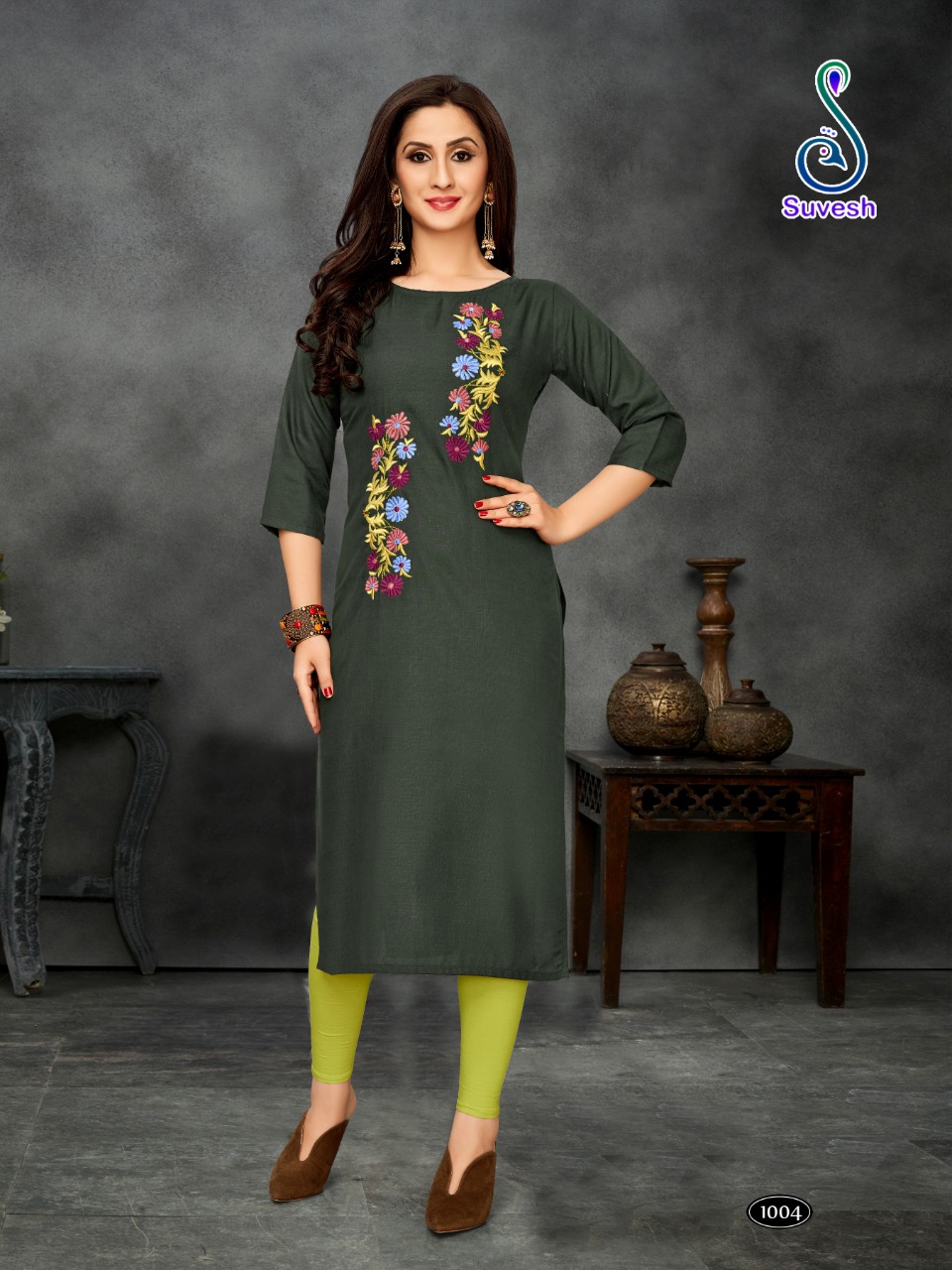 ? *SUVESH* ? *We are louching Our New Kurtis Catalogue* *S 10* ? *Fabric*:- cotton slub With embroidery *Size* :- M, L ,XL, 2Xl, 3xl *Designs*:- 10 pcs *Rate* :- *? 255/-* + gst Disptch 30 jan |