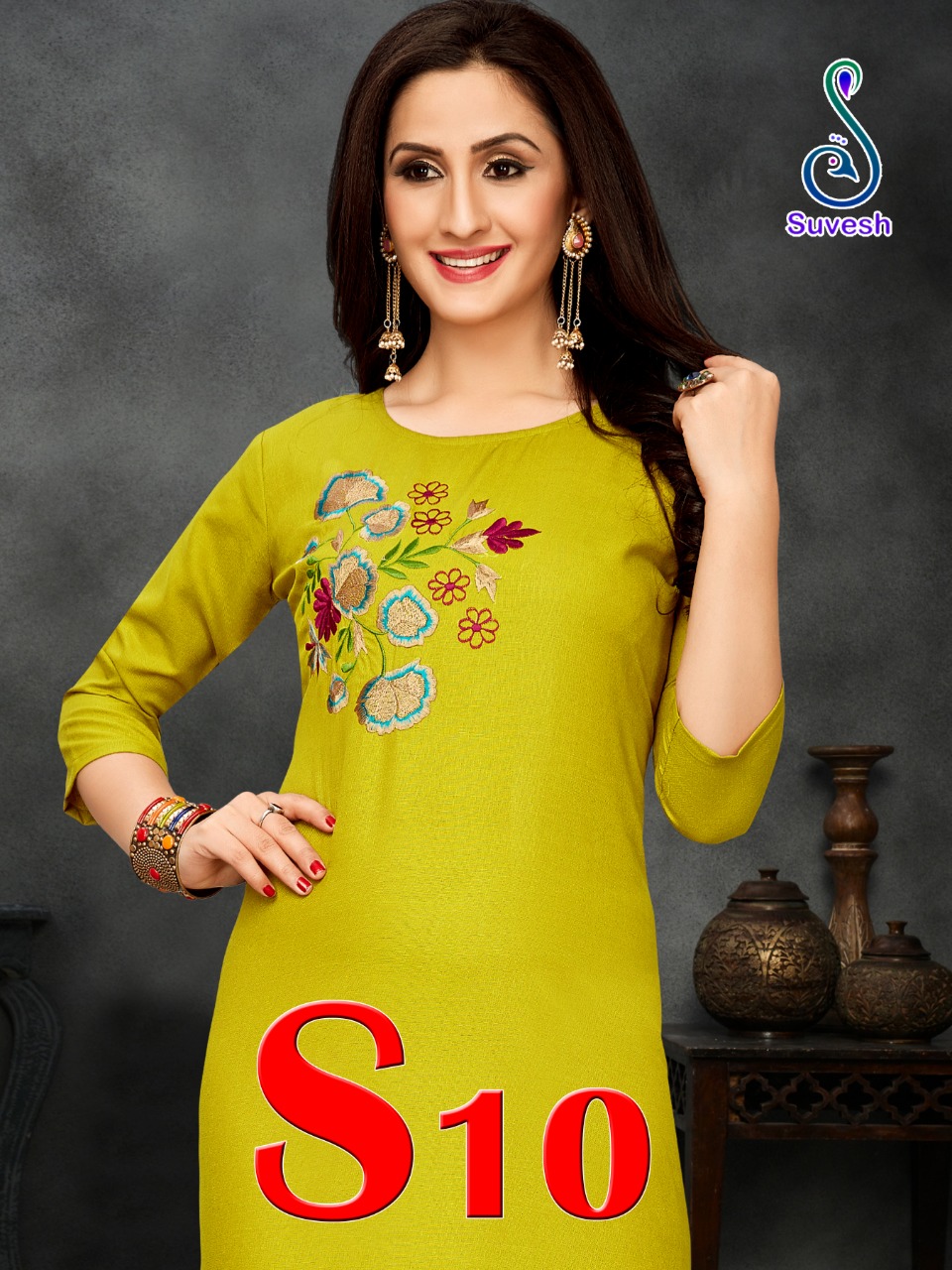 Buy Online S 10 By Suvesh Cotton Kurtis Wholesale Supplier And Dealer Surat 10 Pcs of Full Catalogue at Wholesale Price. Looking for S 10 By Suvesh Cotton Kurtis Wholesale Supplier And Dealer Surat Full Catalouge at Best Price? Buy Now S 10 By Suvesh Cotton Kurtis Wholesale Supplier And Dealer Surat at Wholesale Rate of Rs 2550 with Total 10 Pcs from authroized dealer and supplier of BRAND'S Brand. Cost of Each piece is just only Rs 255 which is very low and affordable price to resale the product in your retail store ,This is Surat based Wholesale Supplier & Dealer of BRAND'S Brand. Click on Brand name to Know more about BRAND'S Brand's products.Call or Whatsapp on 9898838984 for booking or enquiry