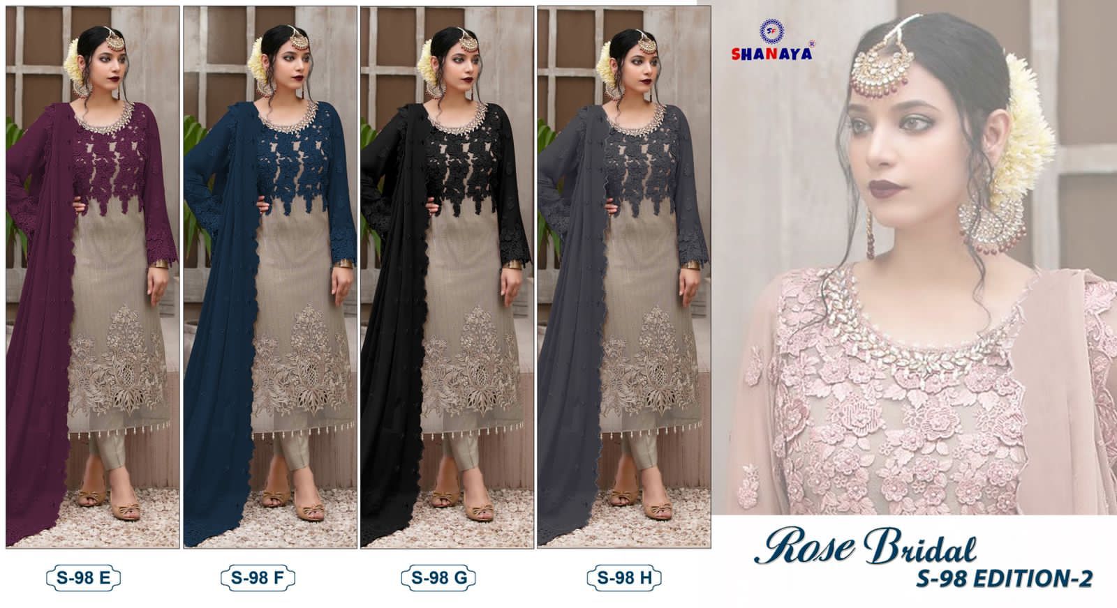 Buy Online S 98 Rditon 2 By Shanaya Rose Bridal Georgette Suit 4 Pcs of Full Catalogue at Wholesale Price. Looking for S 98 Rditon 2 By Shanaya Rose Bridal Georgette Suit Full Catalouge at Best Price? Buy Now S 98 Rditon 2 By Shanaya Rose Bridal Georgette Suit at Wholesale Rate of Rs 5596 with Total 4 Pcs from authroized dealer and supplier of Brand. Cost of Each piece is just only Rs 1399 which is very low and affordable price to resale the product in your retail store ,This is Surat based Wholesale Supplier & Dealer of Brand. Click on Brand name to Know more about Brand's products.Call or Whatsapp on 9898838984 for booking or enquiry