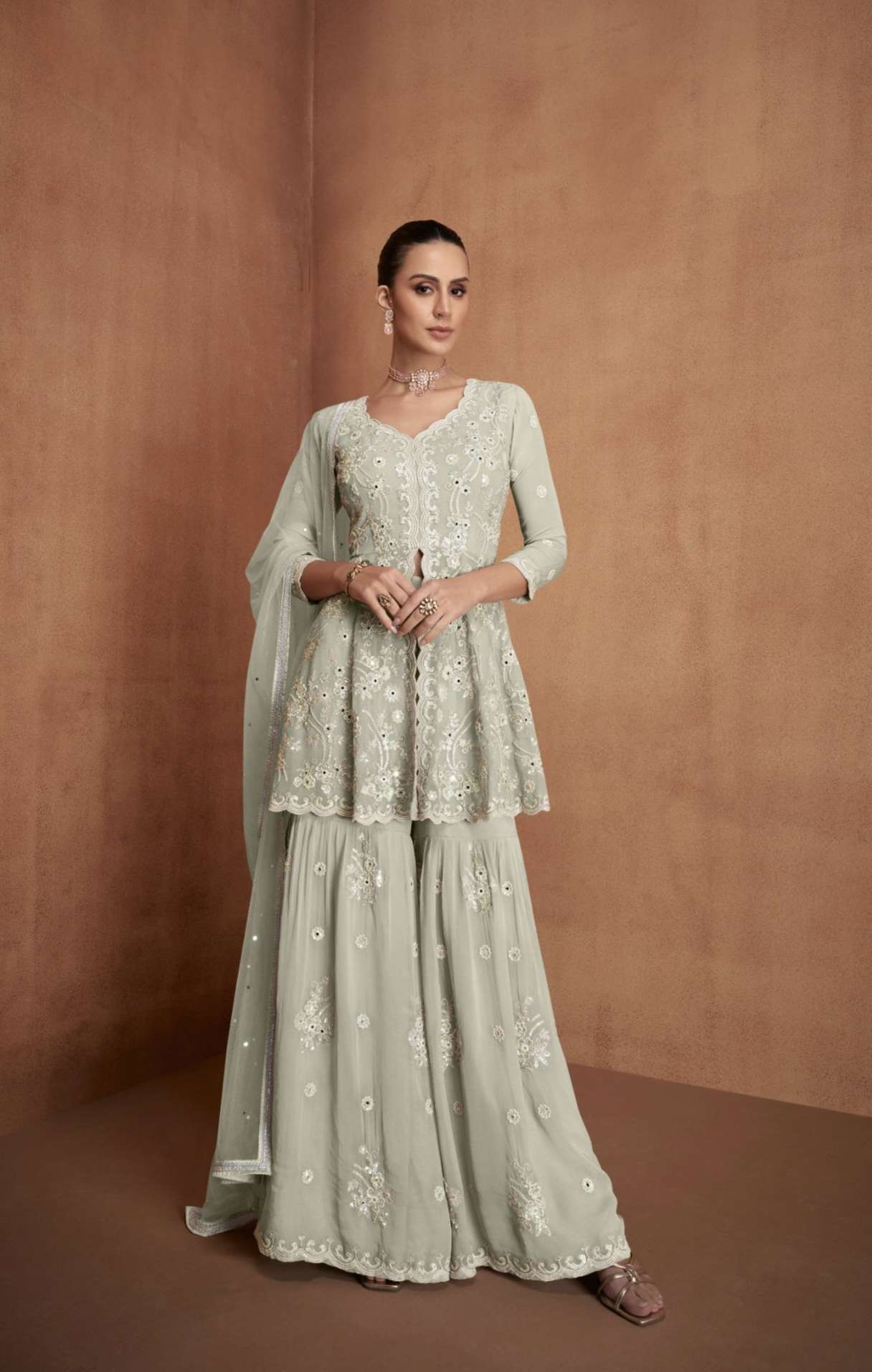 Fabric Detail….!! Top - Real Chinon Dupatta - Real Chinon Plazoo - Real Chinon