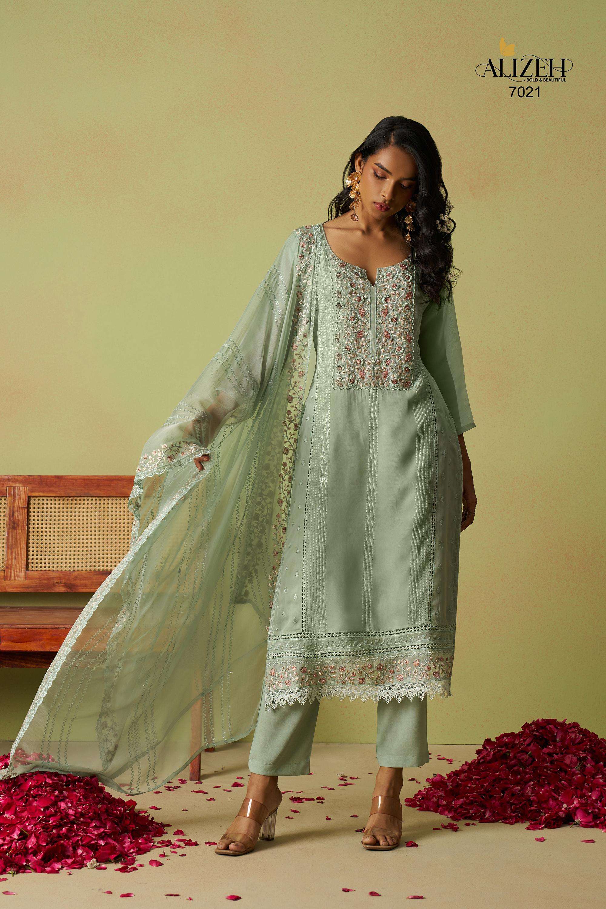 Buy Online SAADGI 3 by Alizeh kurti collection manufacturers surat 4 Pcs of Full Catalogue at Wholesale Price. Looking for SAADGI 3 by Alizeh kurti collection manufacturers surat Full Catalouge at Best Price? Buy Now SAADGI 3 by Alizeh kurti collection manufacturers surat at Wholesale Rate of Rs 11800 with Total 4 Pcs from authroized dealer and supplier of Alizeh Official Brand. Cost of Each piece is just only Rs 2950 which is very low and affordable price to resale the product in your retail store ,This is Surat based Wholesale Supplier & Dealer of Alizeh Official Brand. Click on Brand name to Know more about Alizeh Official Brand's products.Call or Whatsapp on 9898838984 for booking or enquiry