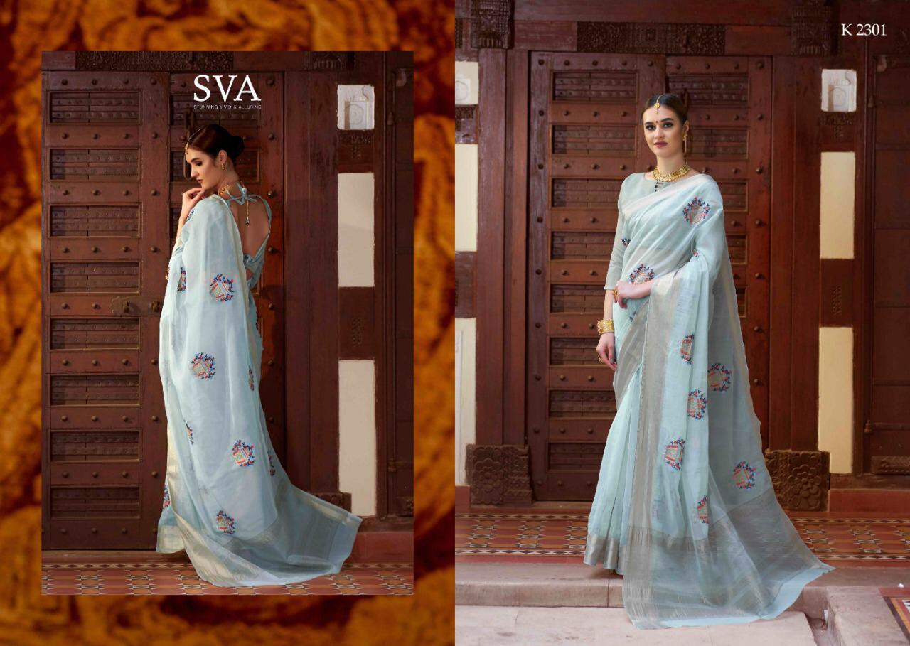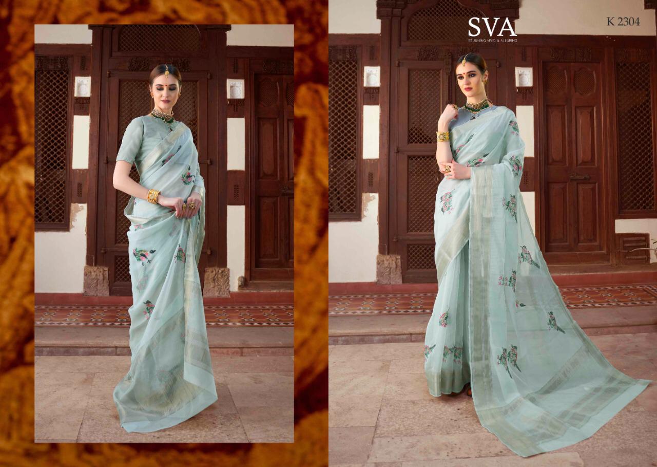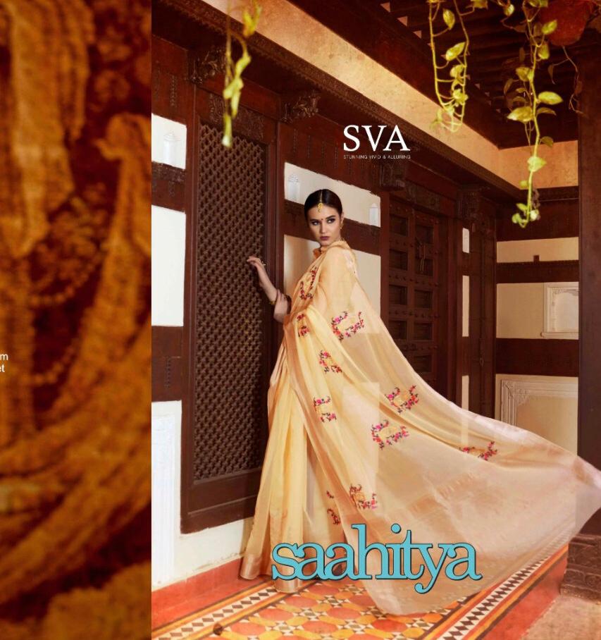 . Saahitya catalogue By SVA Rate -799 per Pcs . Weaving pallu nd border Orgenza fabrics Embroidery work Set To Set. GST 5 Percent Extra. Delivery 3-4 days . |