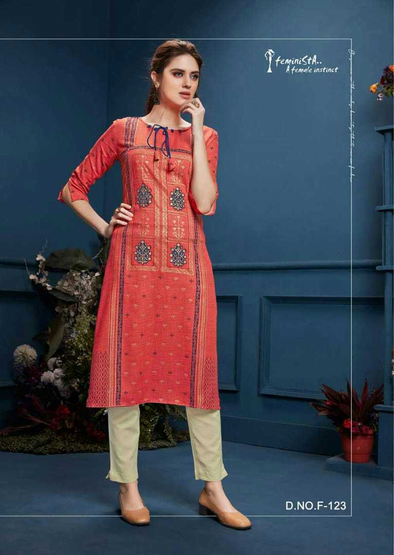 *Catalog* : FEMINISTA-sabad *Brand* : FEMINISTA *Fabric* : rayon *Piece*: 8 *Size*: S, M, L, XL, XXL, XXXL *Delivery Date*: 22-Apr-2019 *Price* : ?3936.0 *Average Price* : ?492.0 |
