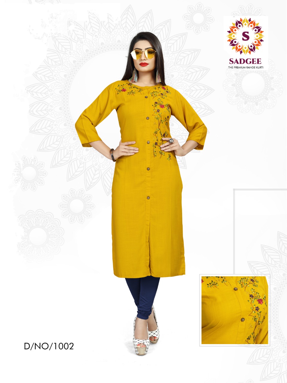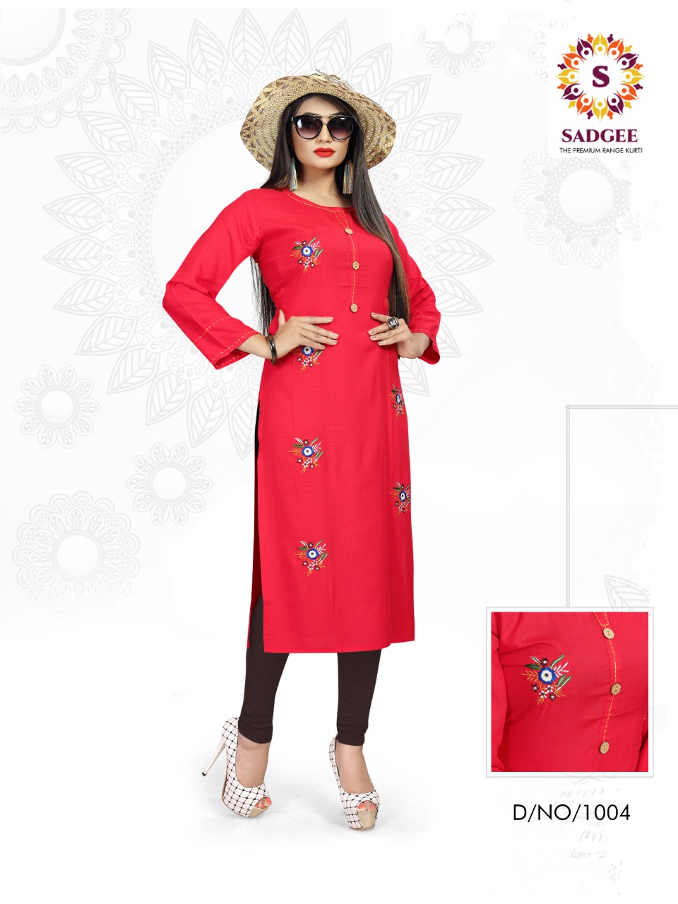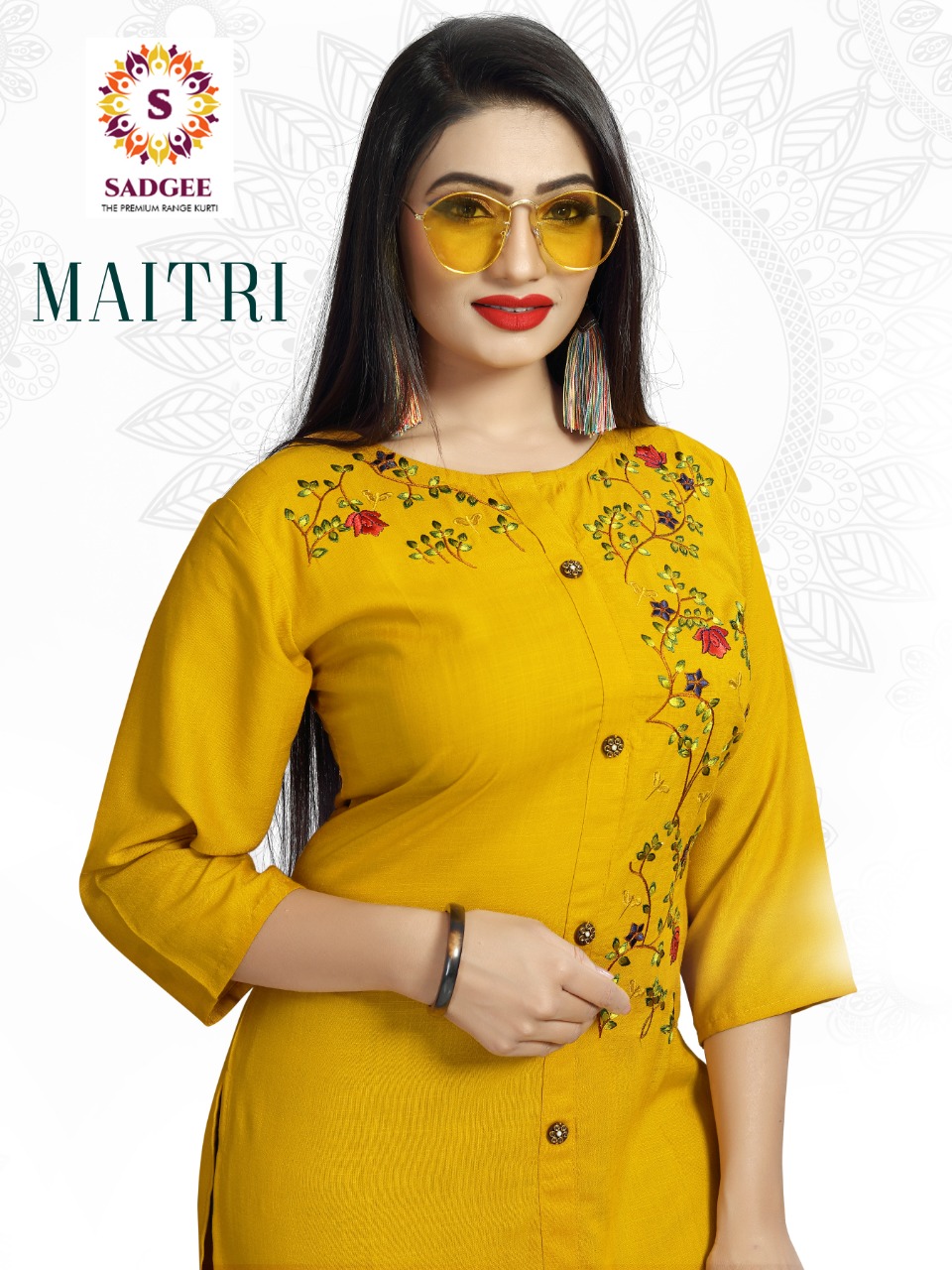The Test of Daily Premium Wear Collection *?Sadgee?* *The Premium Range Kurti * Catalogue Name- *?MAITRI?* ?Details *?Fabrics* : Reyon slub mill dyed with unique embrodiry work *?Size* :- L(20) XL(21) XXL(22) Rate : 375 + 5% GST *?Designs* :- 4 pcs *Length* - 44 plus Limited addition |