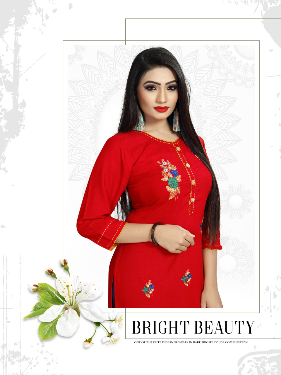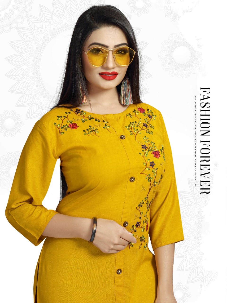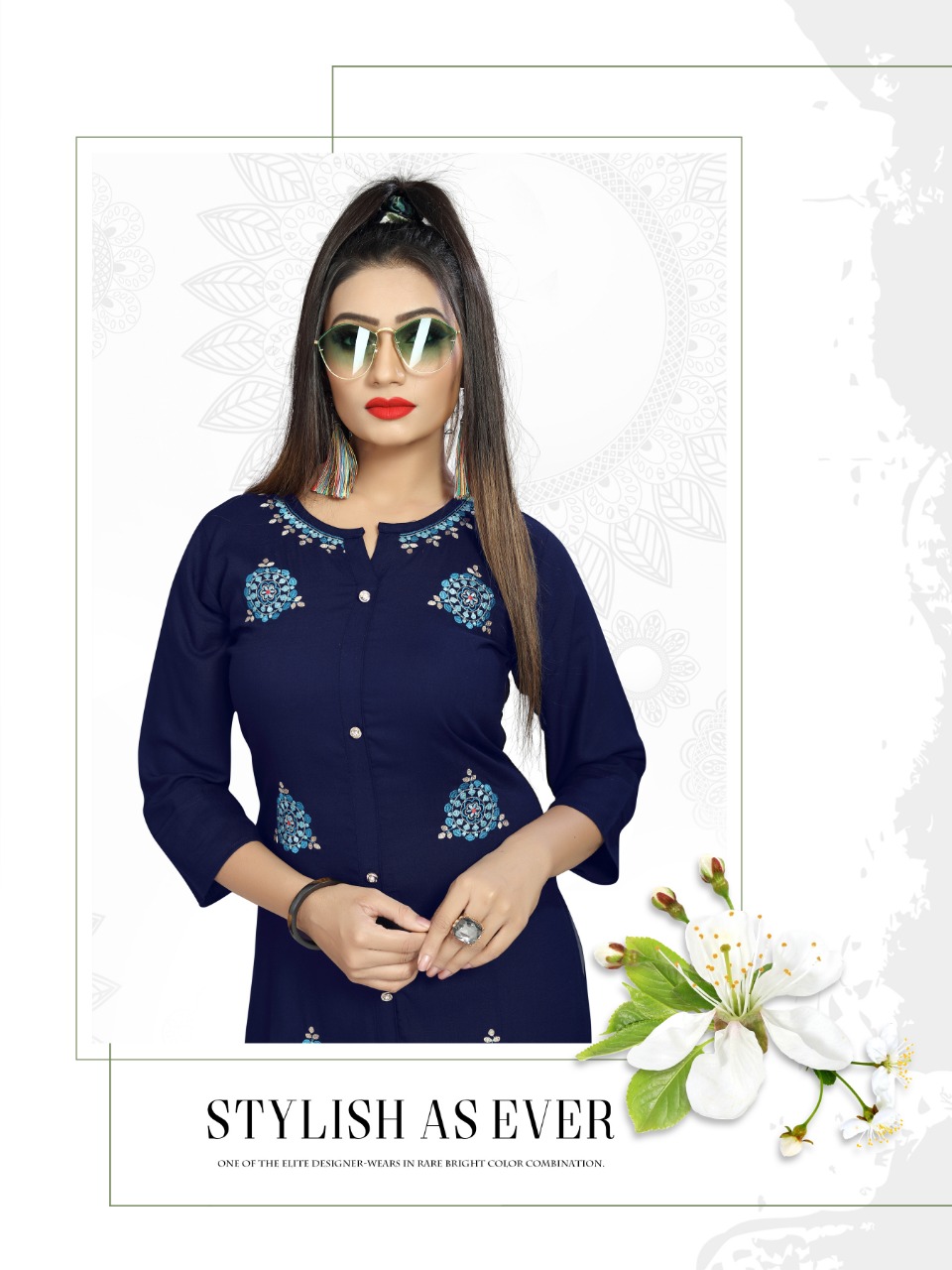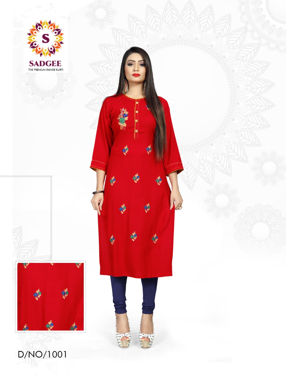 The Test of Daily Premium Wear Collection *?Sadgee?* *The Premium Range Kurti * Catalogue Name- *?MAITRI?* ?Details *?Fabrics* : Reyon slub mill dyed with unique embrodiry work *?Size* :- L(20) XL(21) XXL(22) Rate : 375 + 5% GST *?Designs* :- 4 pcs *Length* - 44 plus Limited addition |