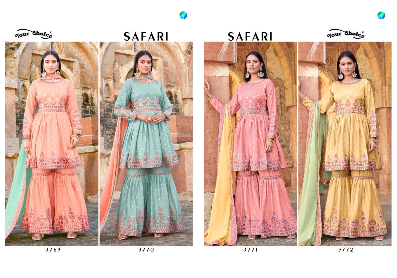 Buy Online Safari The Rang Of Garara By Your Choice Wholesale Supplier Traders In Surat 4 Pcs of Full Catalogue at Wholesale Price. Looking for Safari The Rang Of Garara By Your Choice Wholesale Supplier Traders In Surat Full Catalouge at Best Price? Buy Now Safari The Rang Of Garara By Your Choice Wholesale Supplier Traders In Surat at Wholesale Rate of Rs 7980 with Total 4 Pcs from authroized dealer and supplier of YOUR CHOICE Brand. Cost of Each piece is just only Rs 1995 which is very low and affordable price to resale the product in your retail store ,This is Surat based Wholesale Supplier & Dealer of YOUR CHOICE Brand. Click on Brand name to Know more about YOUR CHOICE Brand's products.Call or Whatsapp on 9898838984 for booking or enquiry