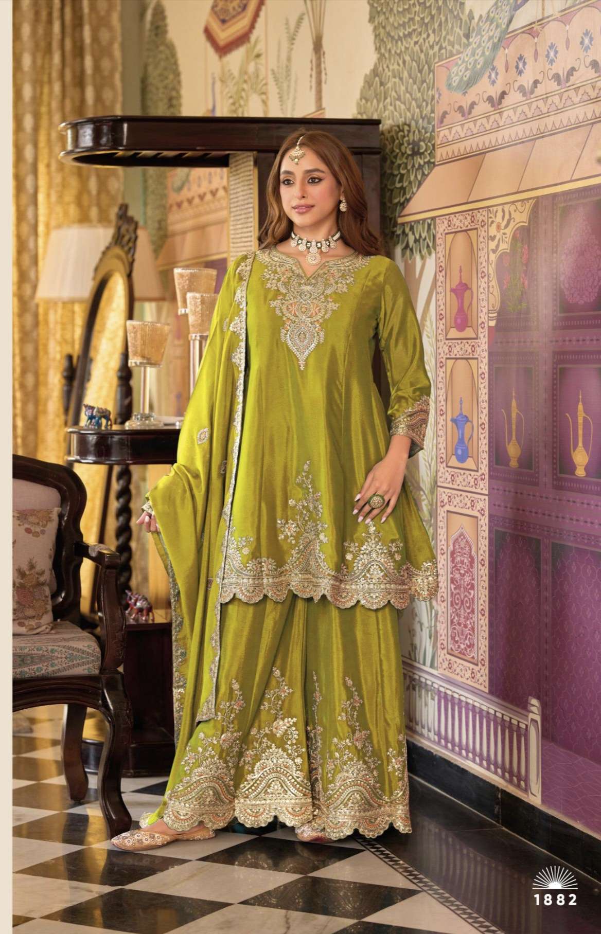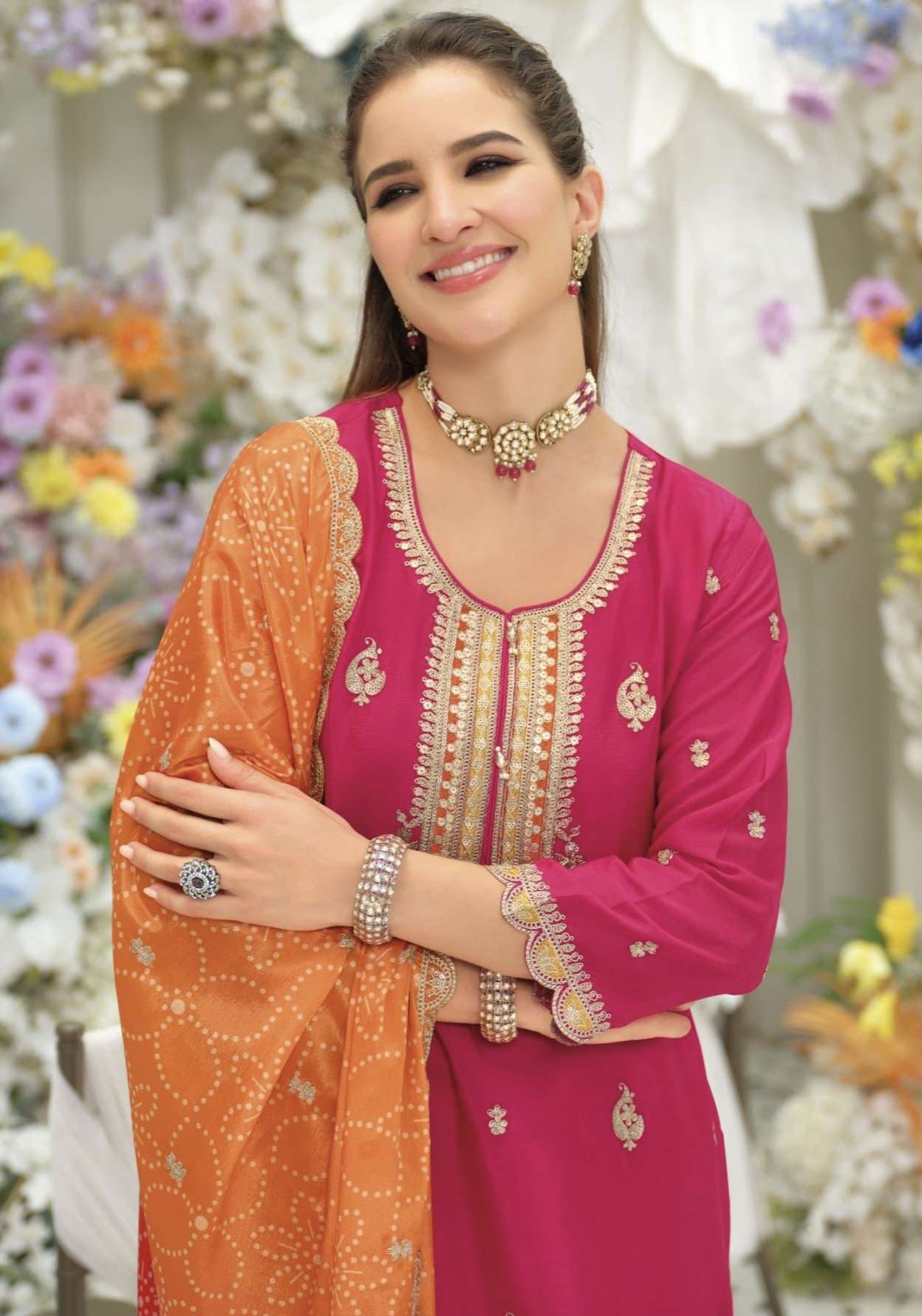 Hello Dear customer Now volume SAFROON vol-4 Top - hevey Chinon with emboidery work Duppta- hevey Chinon with emboidery work plazo - hevey Chinon with emboidery ( front & back work ) RATE - 2399/- Gst extra SINGLE available Size - M(38)' L(40)' XL(42)' 2XL (44)' 3XL(46) 100+ SINGLE |