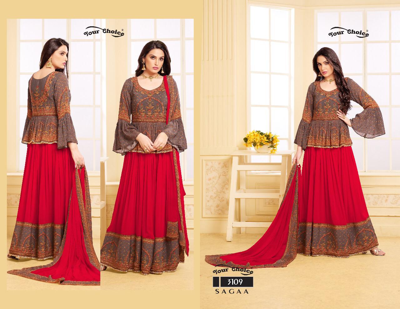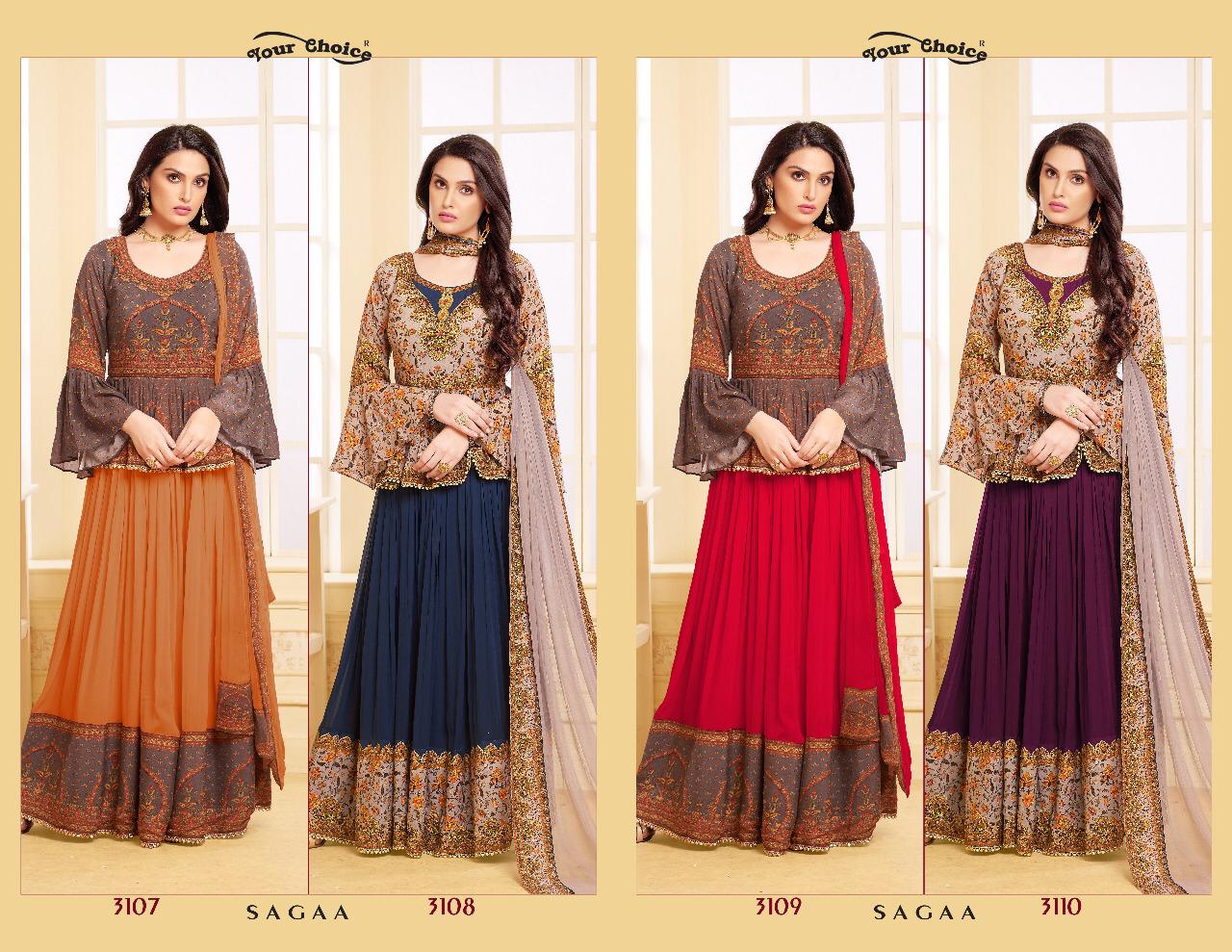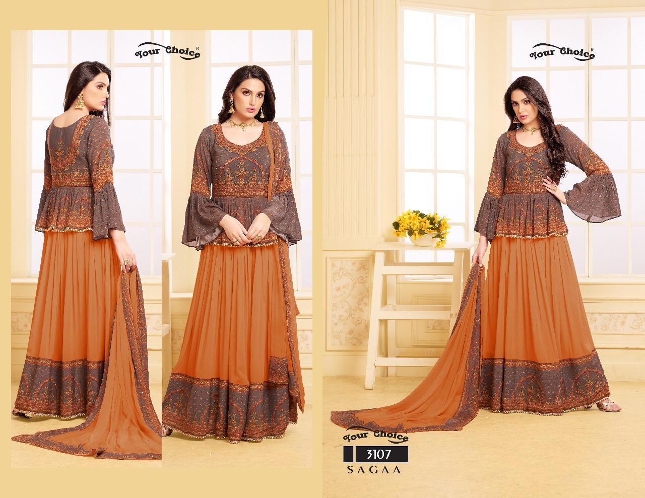 Buy Online Sagaa By Your Choice 3107 Series Fancy Satin Georgette Digital Printed Gown Collection Wholesaler Surat 4 Pcs of Full Catalogue at Wholesale Price. Looking for Sagaa By Your Choice 3107 Series Fancy Satin Georgette Digital Printed Gown Collection Wholesaler Surat Full Catalouge at Best Price? Buy Now Sagaa By Your Choice 3107 Series Fancy Satin Georgette Digital Printed Gown Collection Wholesaler Surat at Wholesale Rate of Rs 6380 with Total 4 Pcs from authroized dealer and supplier of YOUR CHOICE Brand. Cost of Each piece is just only Rs 1595 which is very low and affordable price to resale the product in your retail store ,This is Surat based Wholesale Supplier & Dealer of YOUR CHOICE Brand. Click on Brand name to Know more about YOUR CHOICE Brand's products.Call or Whatsapp on 9898838984 for booking or enquiry