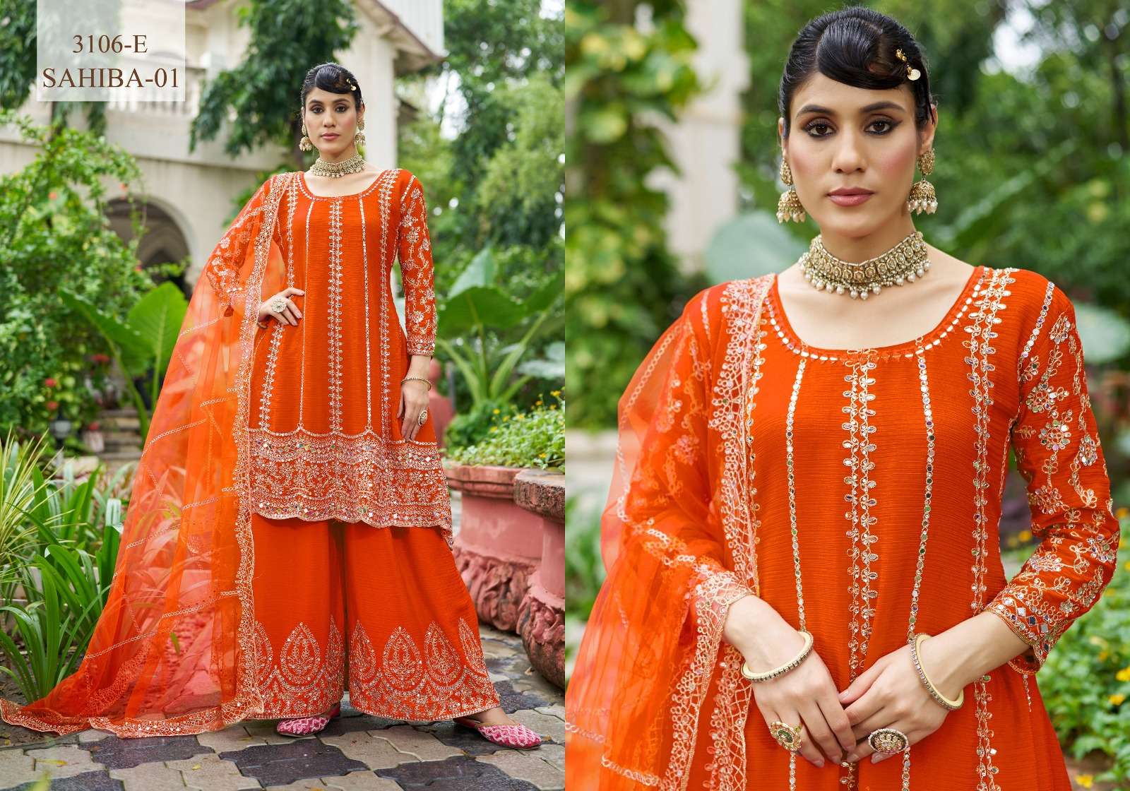 *DESIGN NO - 3106 A- G* ---------------------------- *TOP ANARKALI* - Chinon with neck handwork real mirror Embroidery.(BOTH SIDE WORK )